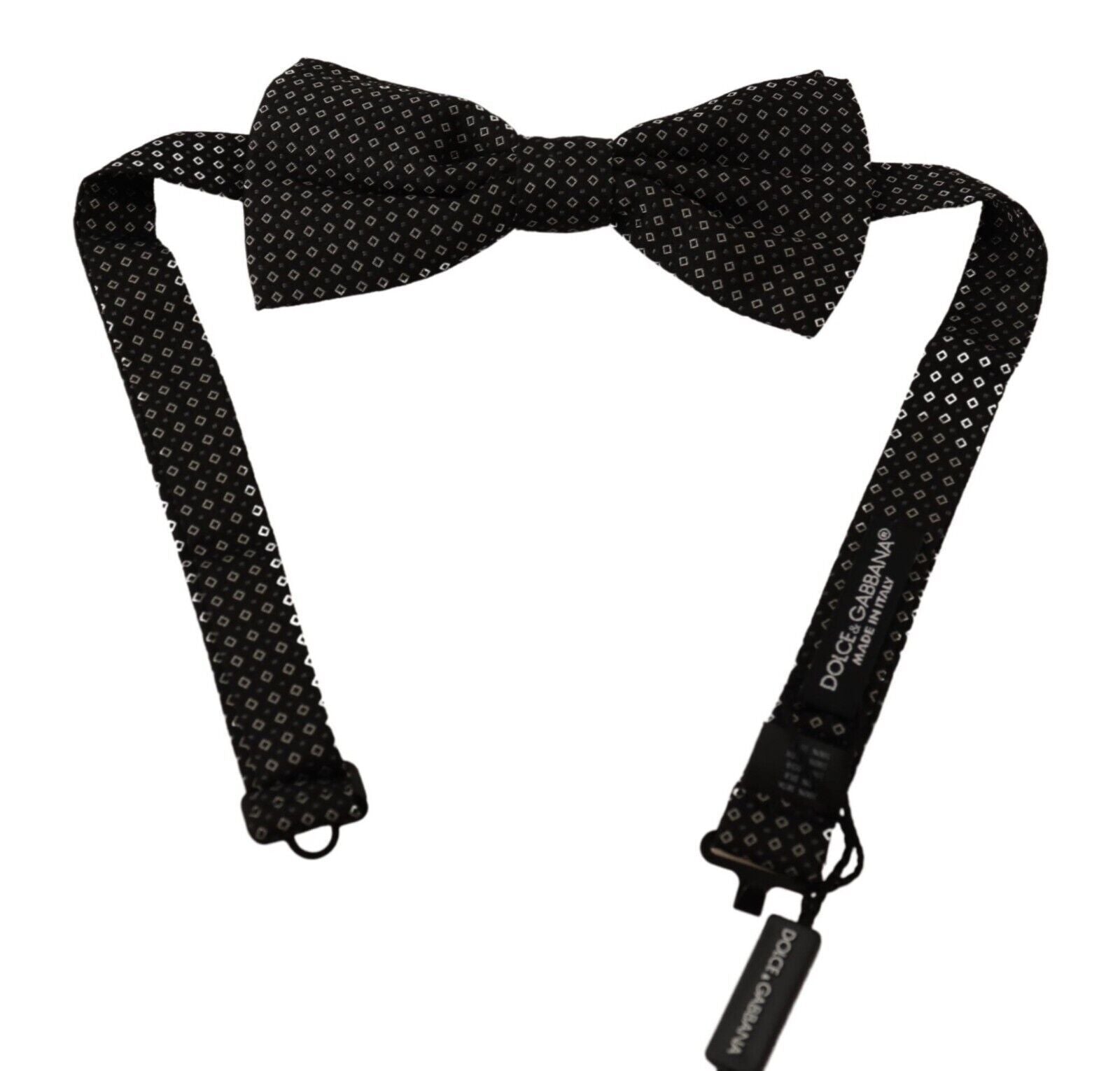 Enrich your attire with this exquisite 100% Authentic Dolce & Gabbana black silk bow tie. Perfect for adding a touch of sophistication to any ensemble, this bow tie features an elegant pattern and a convenient metal clasp in the form of a hook for easy fastening. Crafted with the finest materials, this item is a testament to Dolce & Gabbana’s luxurious collection. Ideal for formal events or special occasions, it comes with an adjustable neck strap, offering a one-size-fits-all versatility. Made in Italy, this accessory epitomizes style and elegance.
