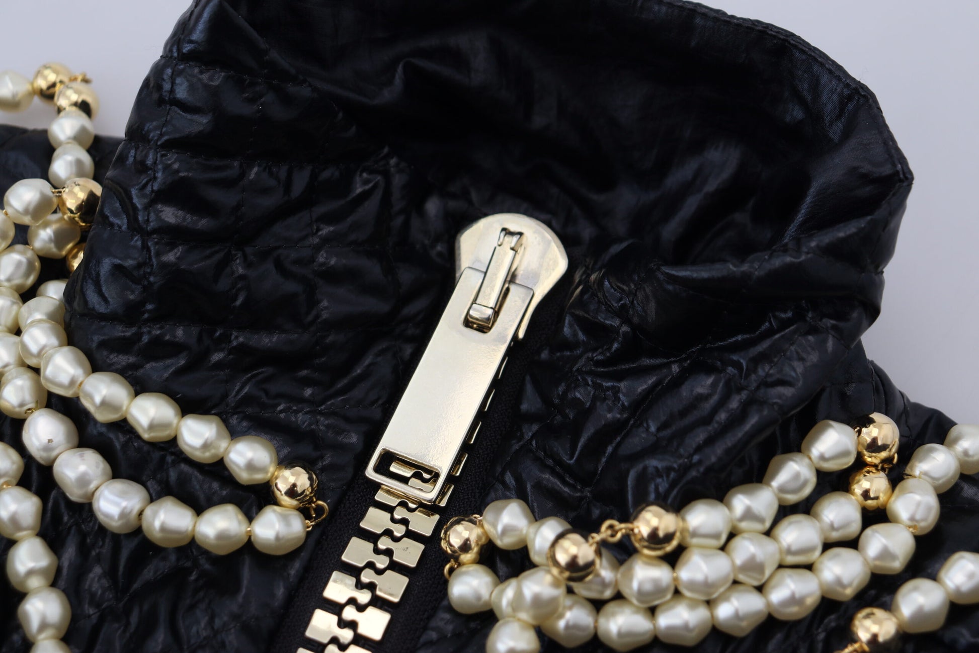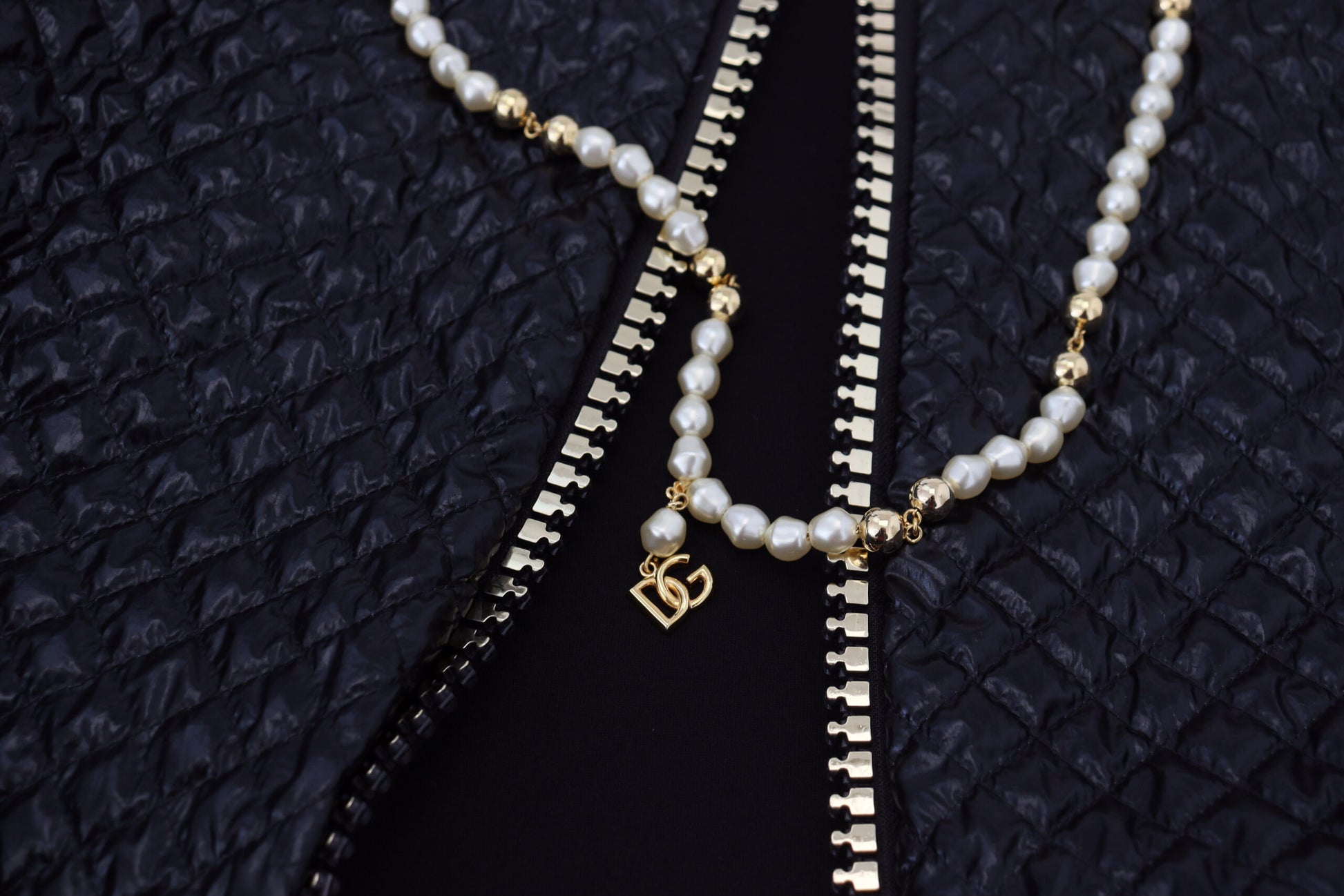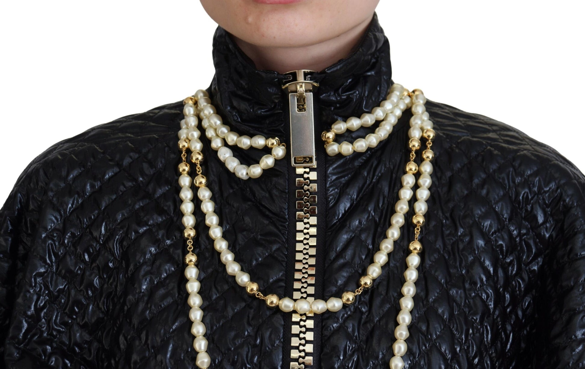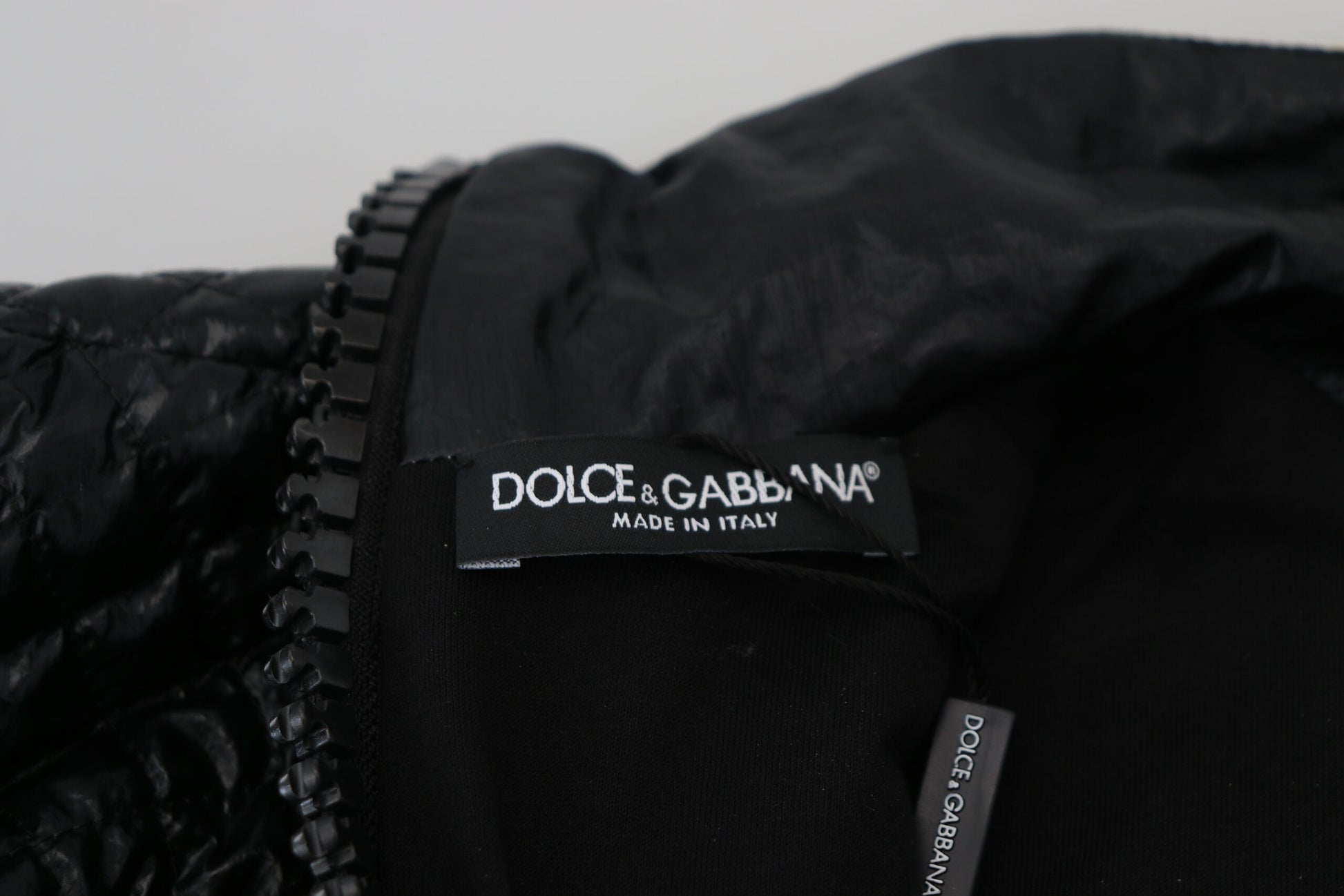 Adorn your wardrobe with the essence of luxury and elegance with this gorgeous full zip sweater, brand new with tags from the high-fashion house of Dolce & Gabbana. Crafted with fine soft nylon, this sweater boasts a chic black color complemented by exquisite pearl embellishments, adding a touch of sophistication to your attire. Exquisitely made in Italy, this sweater features the iconic logo that represents the pinnacle of style and craftsmanship.