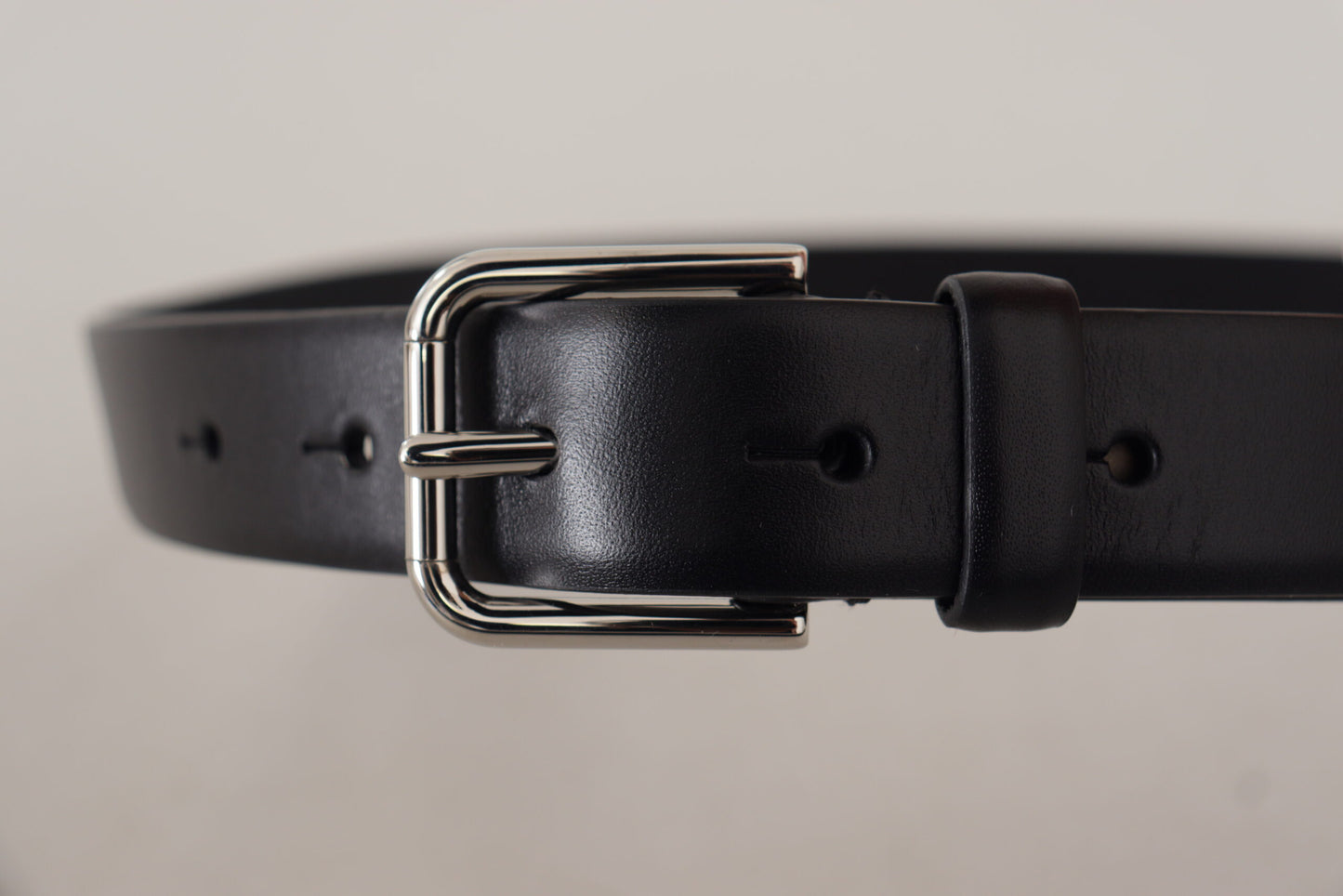 Exude sophistication with this pristine black leather belt from the illustrious Dolce & Gabbana. A testament to impeccable craftsmanship, this belt is designed to deliver not only an exquisite touch to your ensemble but also the durability and snug fit expected from high-quality leather accouterments. The sleek metal buckle affirms a statement of luxury with every wear.