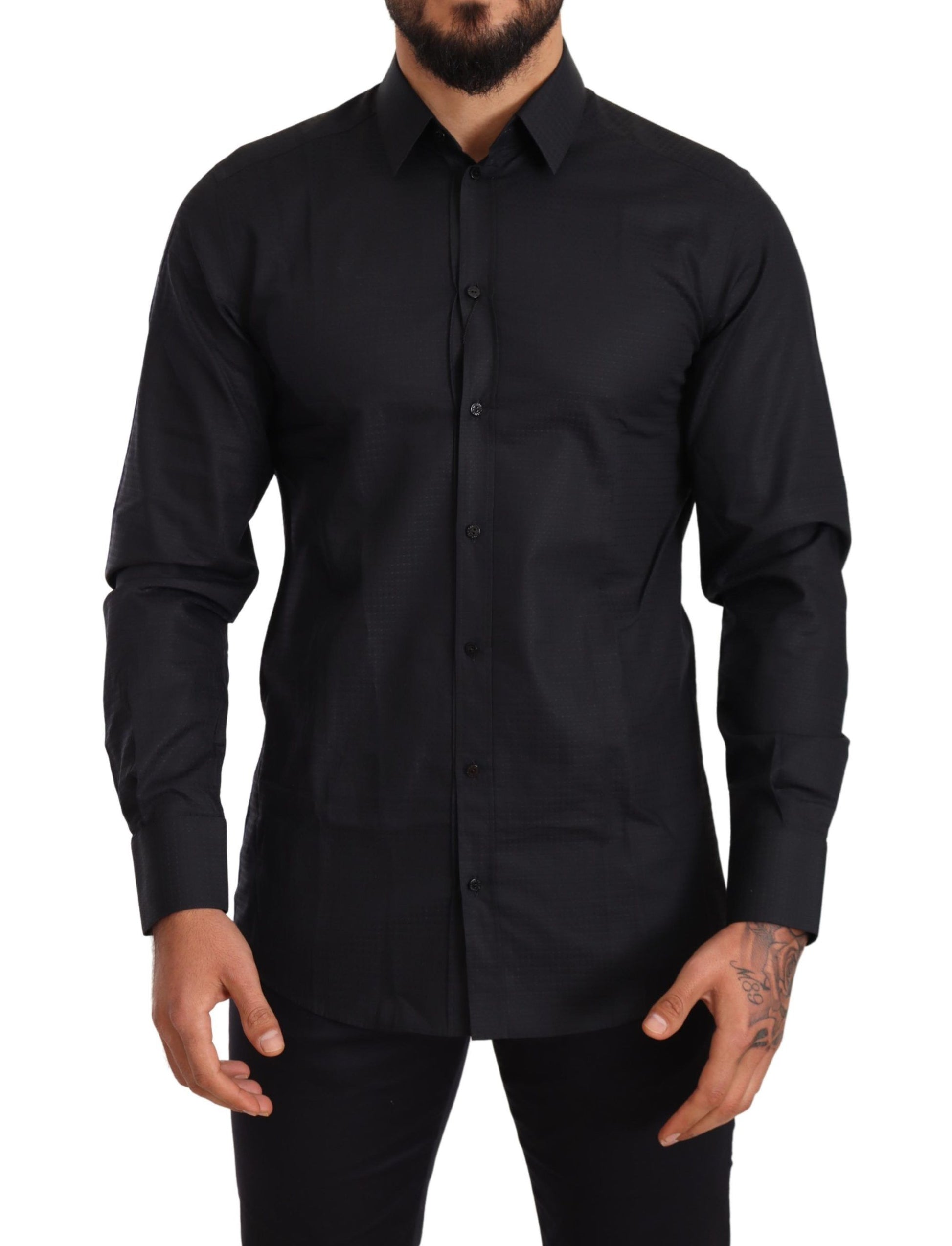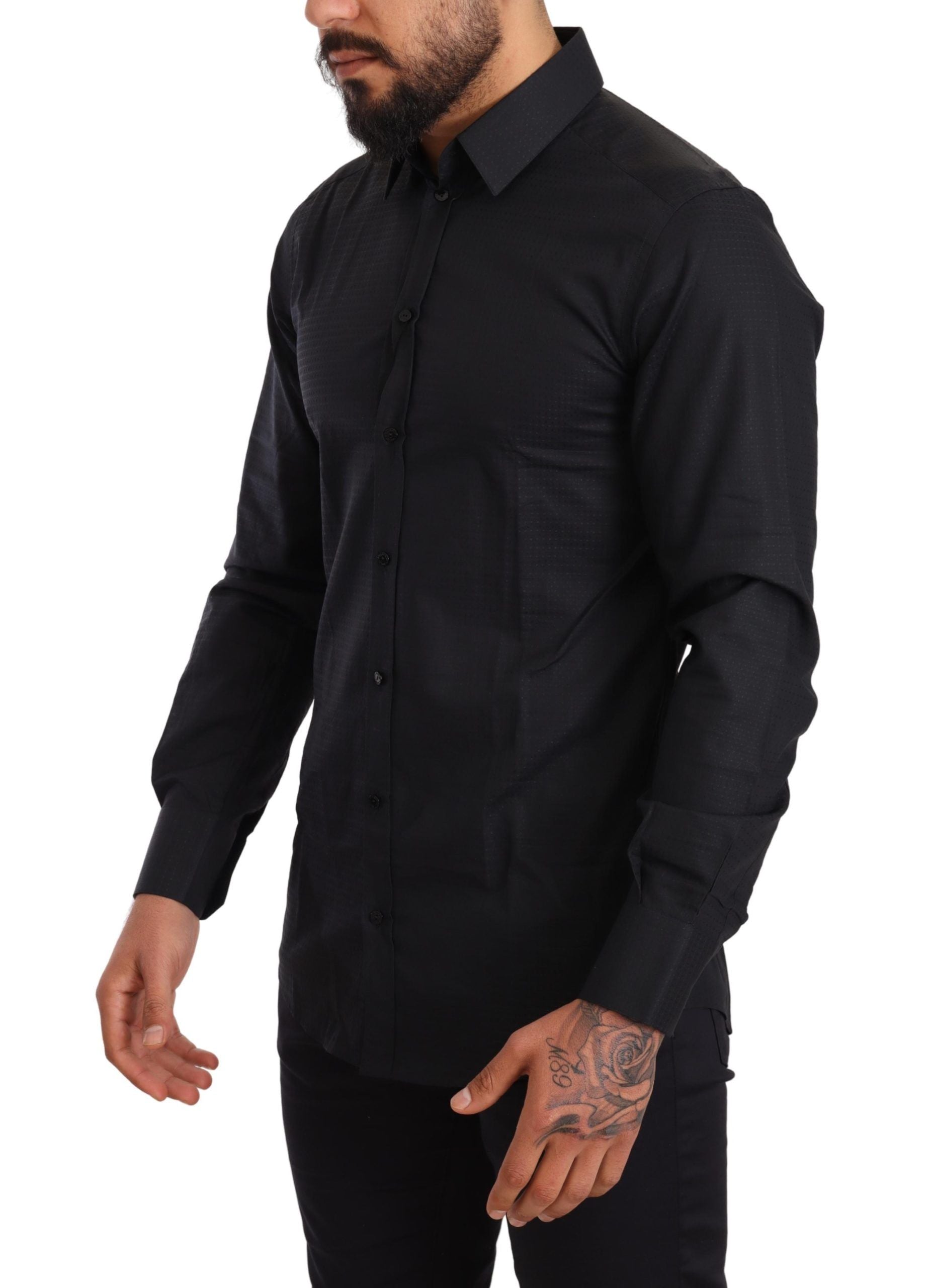 Elegant Black Slim Fit Cotton Shirt