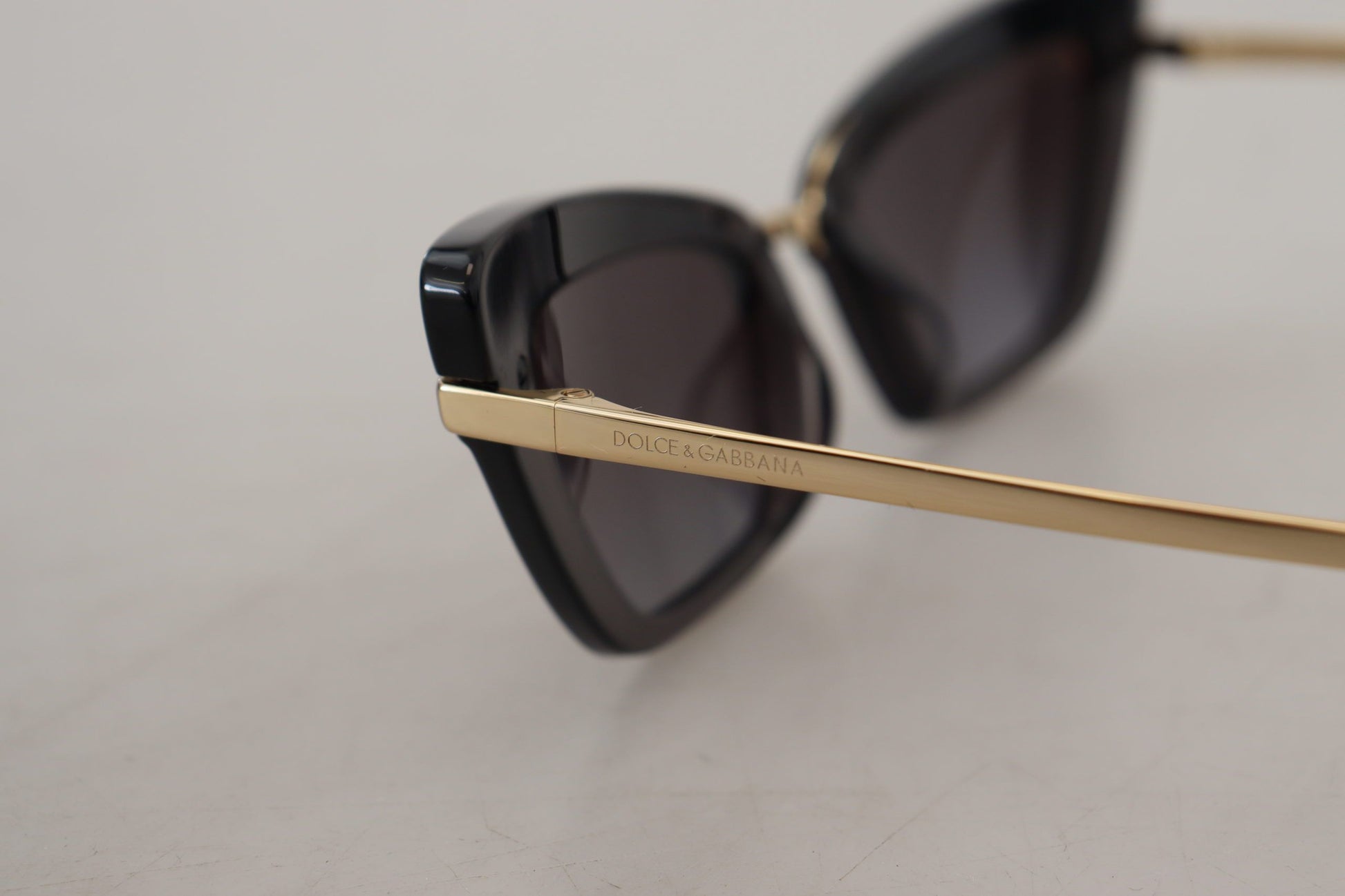 Step into the sunlight with elegance wearing these stunning Cat Eye sunglasses by Dolce & Gabbana. Designed for the modern woman, these shades feature a sophisticated black and gold acetate frame paired with chic gray lenses that ensure 100% UVA/B protection. Crafted in Italy, they reflect luxury and style synonymous with the iconic fashion label.