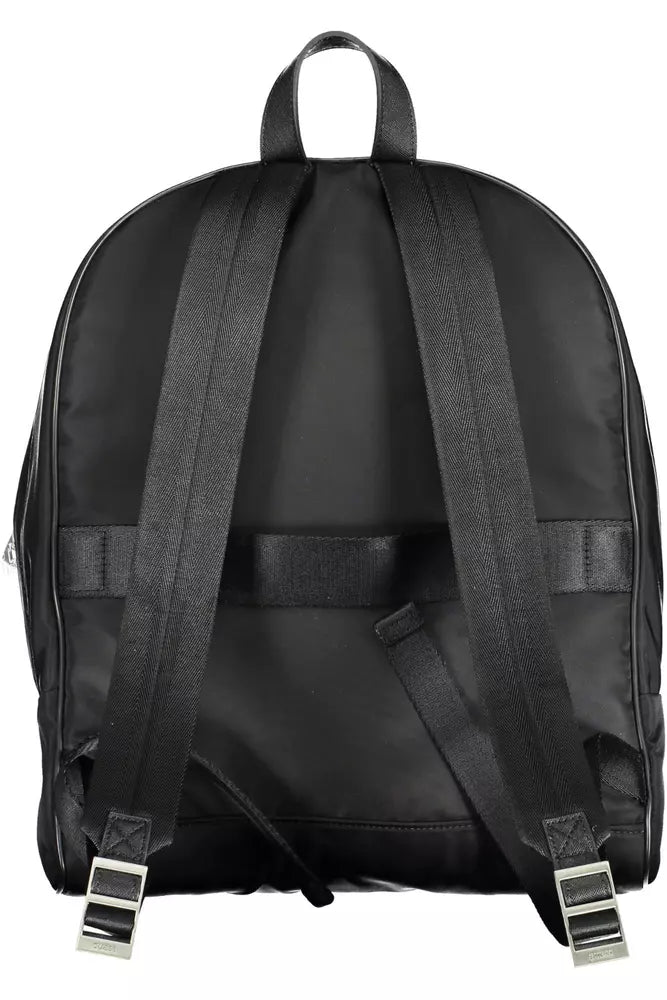 Embark on your daily ventures with style and functionality using this sleek backpack. Crafted from high-quality recycled nylon, it features a comfortable single handle, adjustable straps for a customized fit, and a zip closure to keep your essentials secure. Organizational ease is provided by an external pocket, multiple internal pockets, and a dedicated laptop compartment, making it ideal for both work and leisure. Adorned with a subtle logo from the renowned fashion house Guess Jeans, this backpack is not only a statement of style but also an eco-friendly choice for the fashion-forward individual.
