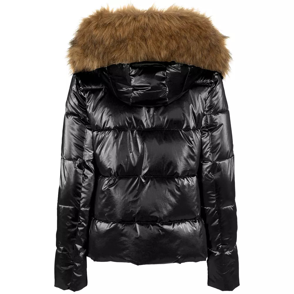 Experience unmatched warmth and impeccable style with our chic short down jacket. Designed to keep you cozy with its plush eco-fur hood, this polyamide jacket ensures you make a sophisticated statement while braving the elements. The sleek black hue complements any outfit, making it a versatile addition to your winter wardrobe.