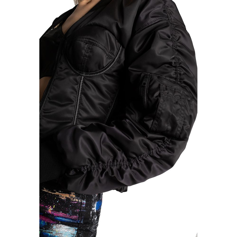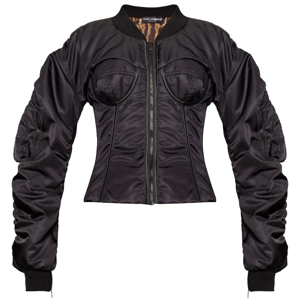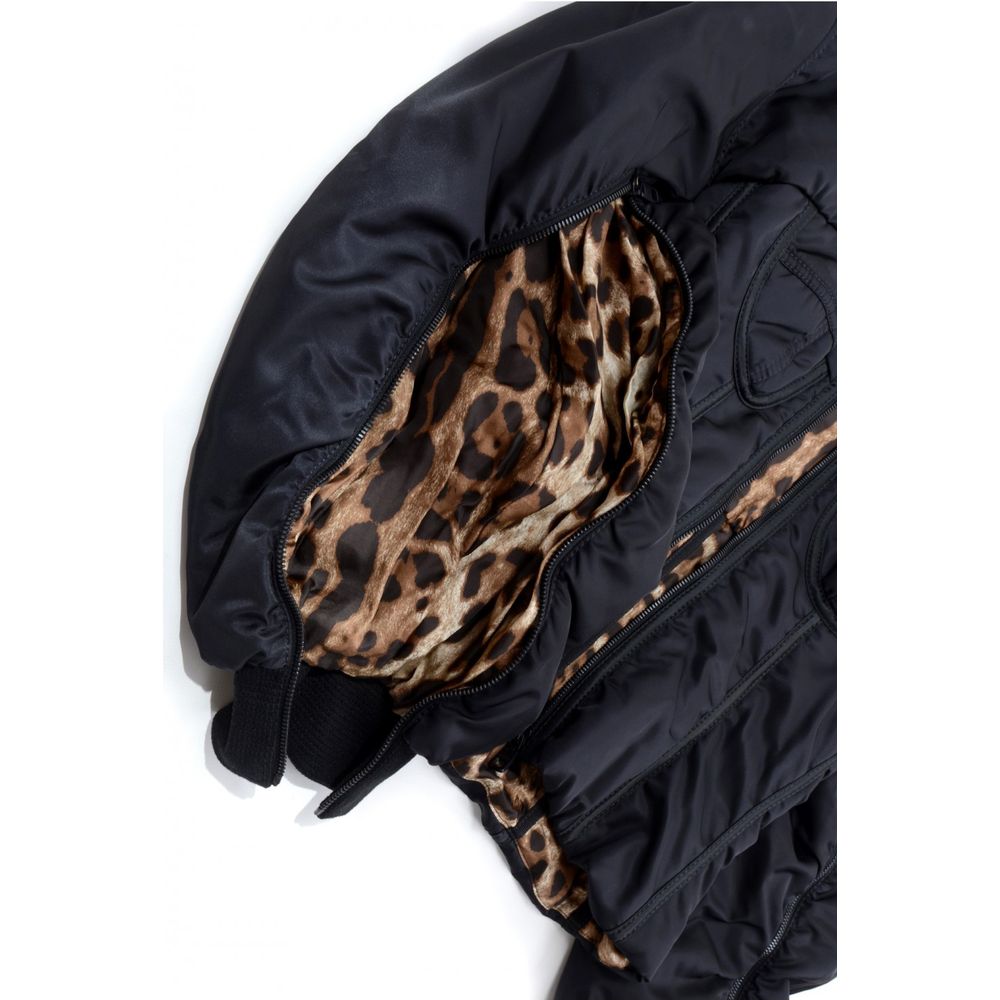 Elegant Zip Sleeve Bomber Jacket with Leopard Lining