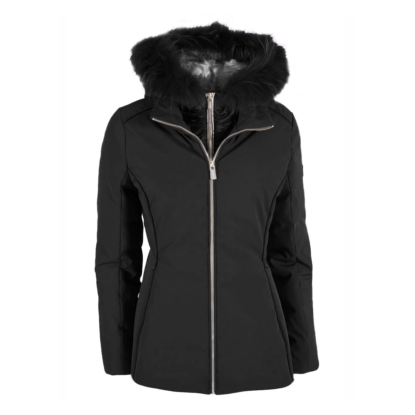 Experience warmth and style with this luxurious polyamide women’s down jacket, featuring plush real down padding for those chilly days. A versatile piece with a zip closure and detachable internal padding for adjustable comfort. The fur-trimmed hood adds a touch of sophistication, while the two side pockets provide practicality. Its sleek black color ensures it can complement any outfit with ease.