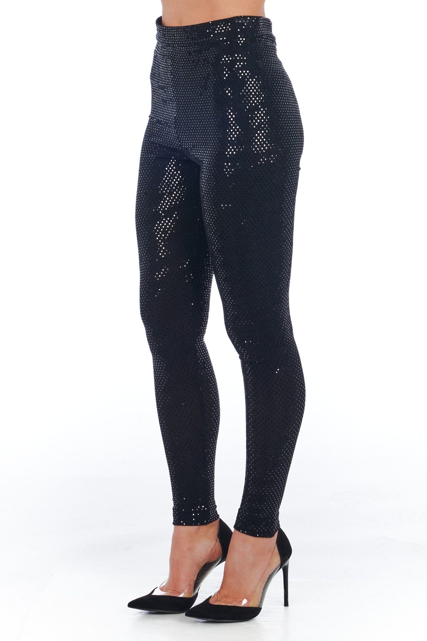 Embrace your glamorous side with these Frankie Morello Stretch Leggings, featuring eye-catching sequins and a flattering high waist design. Perfect for adding a touch of sparkle to any outfit, they’ll become your go-to for both daytime shine and evening elegance.