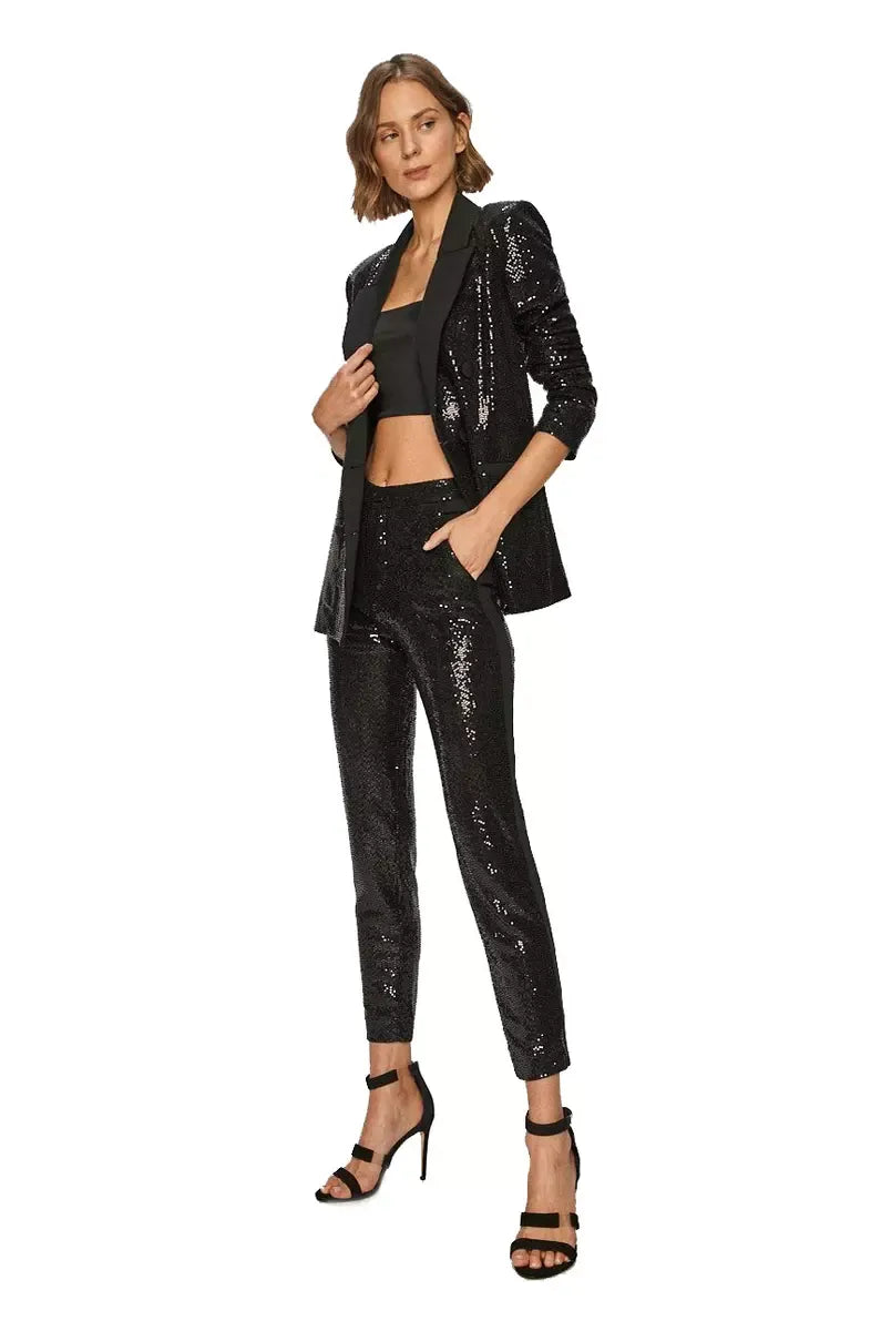Chic Sequined Black Nylon Pants