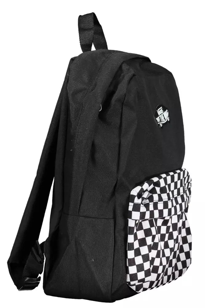 Elevate your on-the-go style with this sleek and functional black backpack from Vans. Designed for convenience and durability, it features one handle, adjustable shoulder straps, and a zip closure, ensuring your belongings are secure and easily accessible. The contrasting details add an edgy touch while the bold logo showcases brand identity effortlessly.