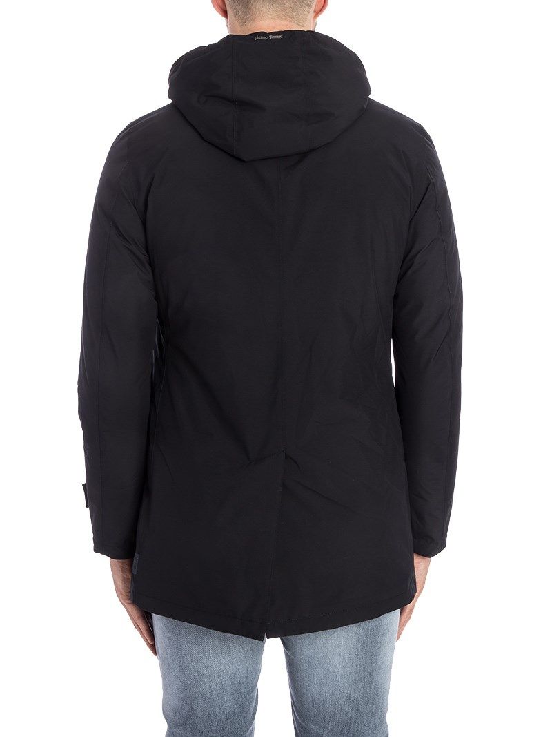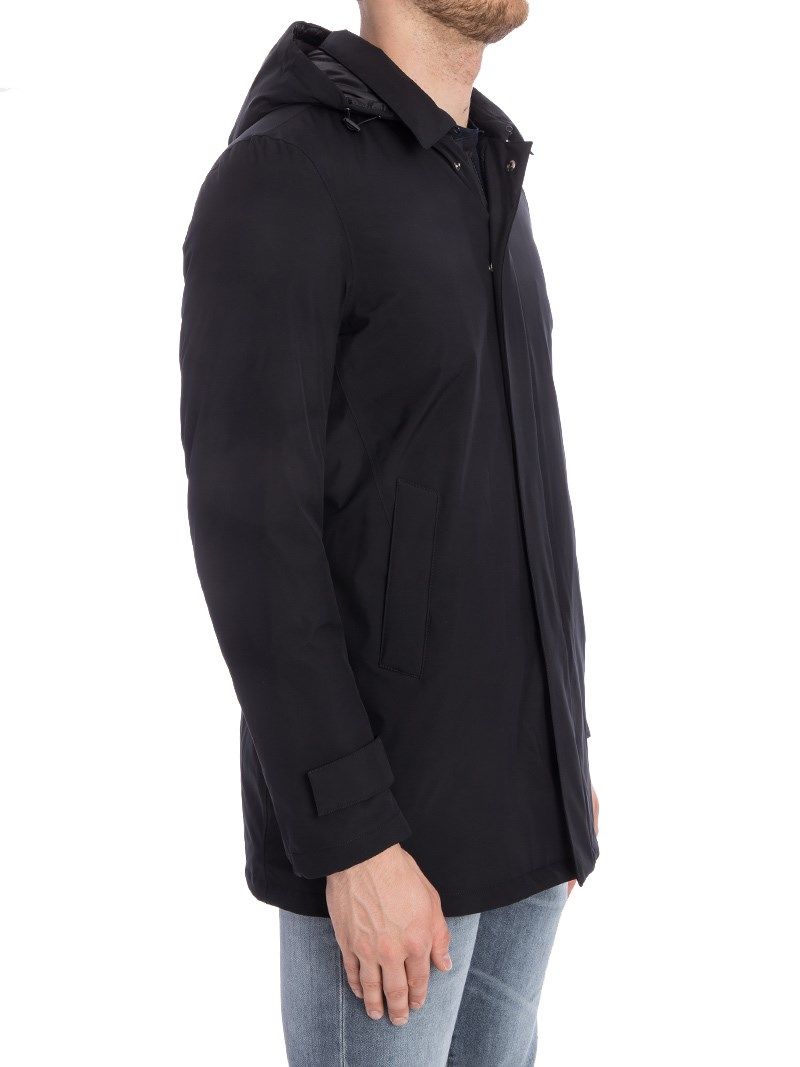 Discover unparalleled sophistication with our black down jacket, perfect for braving the cold in style. Equipped with a removable hood, it offers versatility to match your ever-evolving fashion needs. The jacket’s synthetic padding ensures you stay warm without compromising on comfort, while side pockets with buttons provide functionality. A sleek double-slider zip closure and press studs add a refined touch to this wardrobe essential.