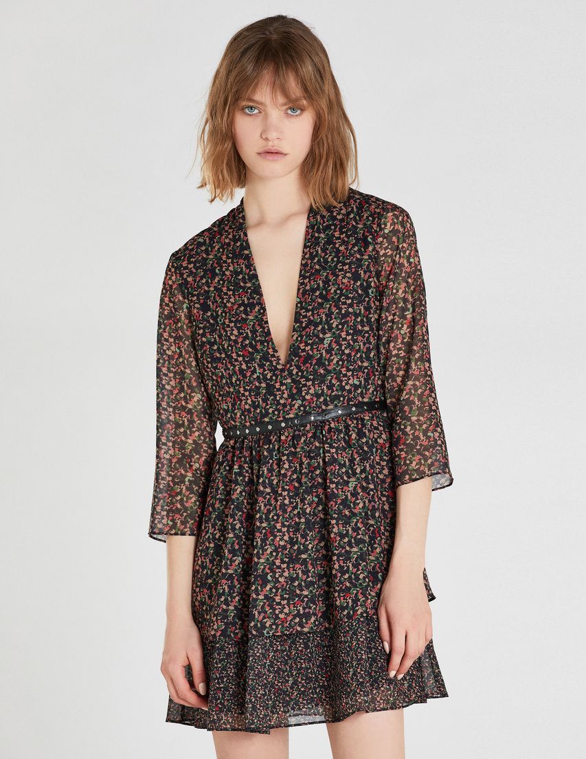 Elevate your wardrobe with this sophisticated short chiffon dress, perfect for any occasion that requires a touch of elegance. The dress features a flattering V-neck cut, and comes with a synthetic leather belt adorned with metal studs, offering you both comfort with its regular fit and a dash of edginess.