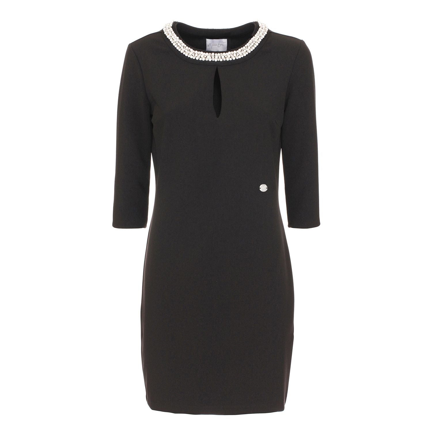 Exude elegance with this chic long sleeve black dress, perfect for both daytime sophistication and evening allure. Crafted from a blend of polyester and elastane, it ensures comfort with a hint of stretch for the ideal fit. This piece is not just a classic addition to your wardrobe, but also an emblem of Italian craftsmanship.