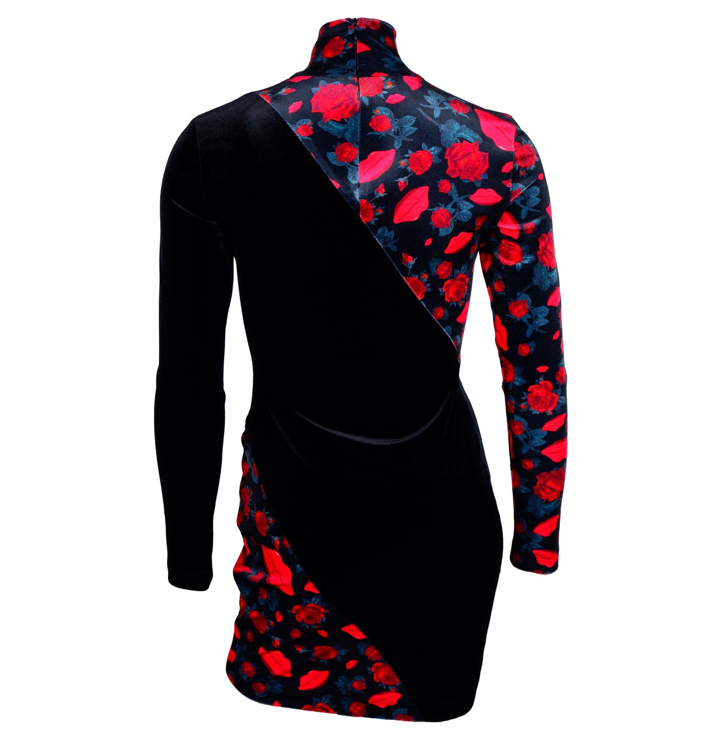 Sophistication meets comfort in this fitted velvet dress, perfect for your next upscale event. Its unique diagonal cuts exude a modern elegance, while the high collar adds a touch of regal grace. A seamless back zipper ensures a sleek silhouette. Designed and made in Italy, the dress is a testament to timeless style and craftsmanship.