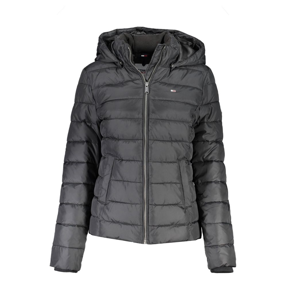 Experience style and functionality with Tommy Hilfiger’s long sleeve jacket, perfect for any occasion. Featuring a detachable hood and two external pockets, this sleek black jacket is a must-have for those looking for a versatile outerwear option. The zip closure and iconic logo application add a touch of class, while the commitment to sustainability is evident with its 95% recycled polyester construction.