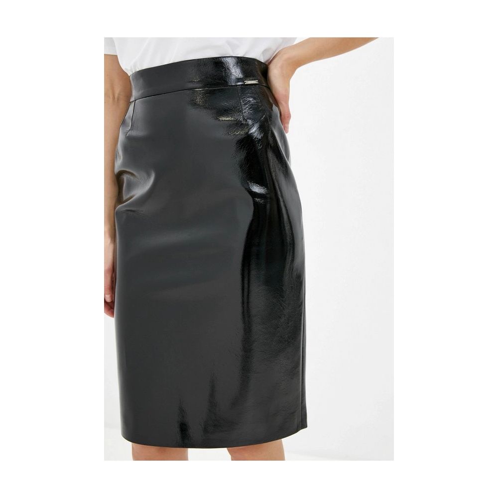 Step out in sophisticated style with this chic black patent midi skirt. The sheath silhouette paired with a zipper closure offers a sleek and flattering fit that’s perfect for any occasion. A stylish back slit adds a touch of allure to this classic piece, making it a timeless addition to your wardrobe. Constructed from high-quality polyester, this skirt ensures both comfort and durability.