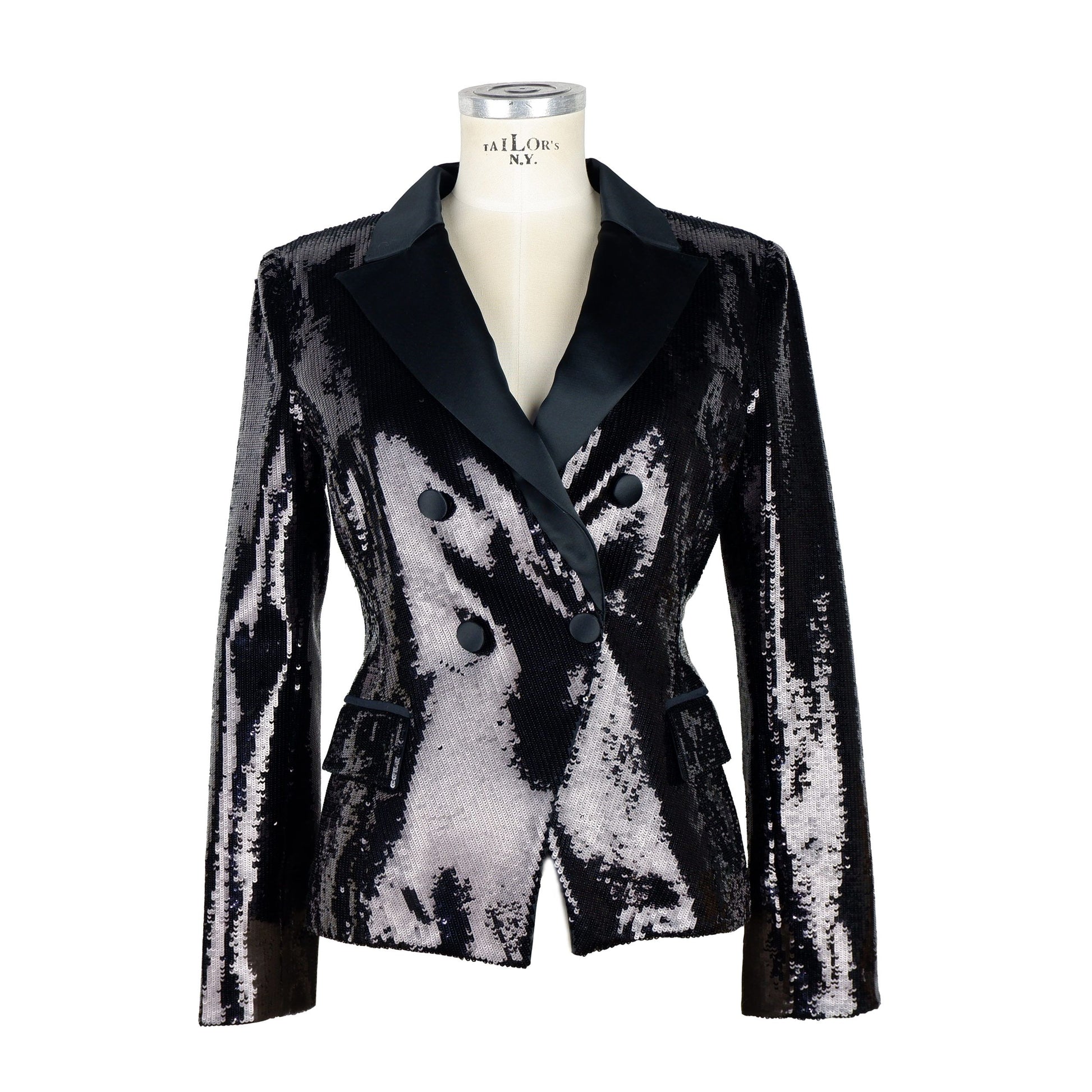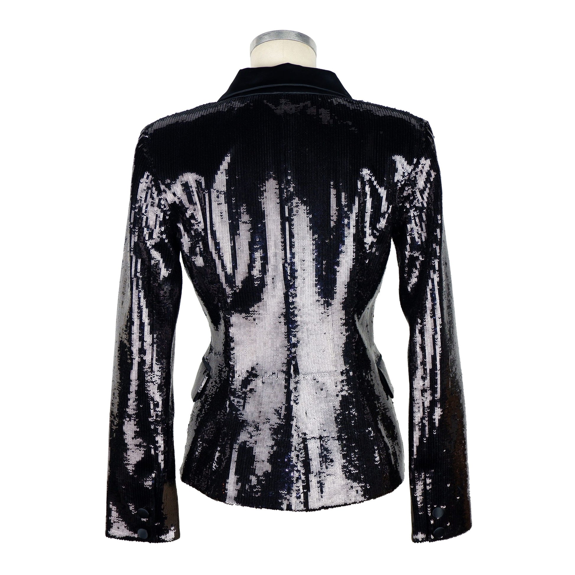 Step into the spotlight with this classic double-breasted jacket, embellished with dazzling sequins for a touch of glamour. The sharp pointed collar and functional front pockets meld practicality with style. Crafted with exquisite attention to detail in Italy, this jacket is a testament to timeless elegance and sophistication.