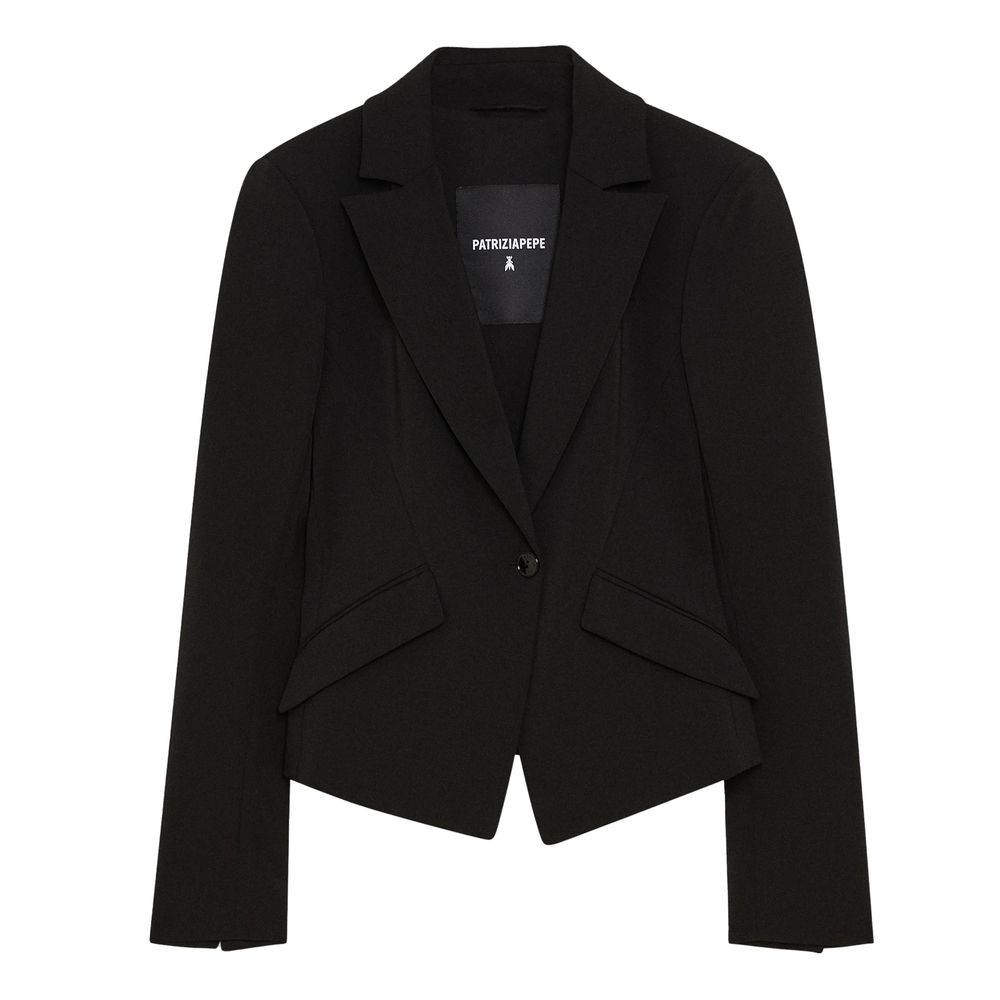 Elevate your wardrobe with this sophisticated Patrizia Pepe classic two-button jacket. Impeccably tailored and made in Italy, this piece exemplifies luxury and style.