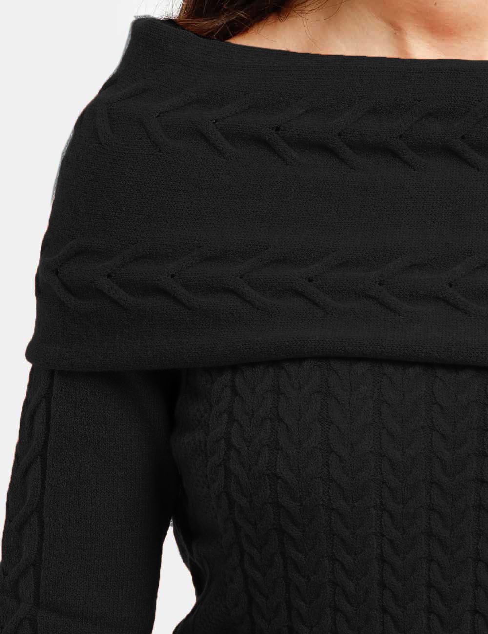 Upgrade your knitwear collection with this sophisticated black sweater, featuring a stylish wide neck and long sleeves for a cozy yet elegant look. The subtle brand logo accentuates the bottom, adding an exclusive touch to your ensemble. Crafted with a premium blend of materials, it promises comfort and durability.
