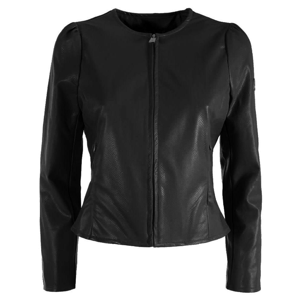 Unleash your style with this sophisticated python print eco-leather jacket, a perfect blend of fashion and sustainability. Practical zip closure and side pockets add functionality to this trendy wardrobe essential from the latest collection.