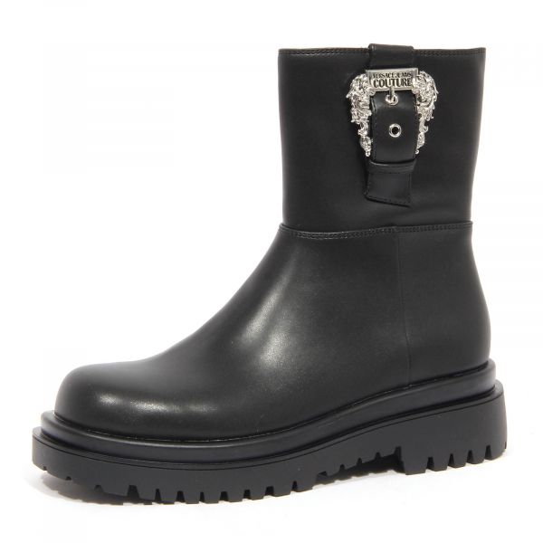 Step into style and sophistication with these elegant black ankle boots, designed with a side zip fastening for convenience and a stunning baroque buckle detail that adds a touch of class. Crafted with a sleek round toe silhouette and a durable rubber sole, these boots seamlessly combine fashion with function, making them a versatile addition to any wardrobe.