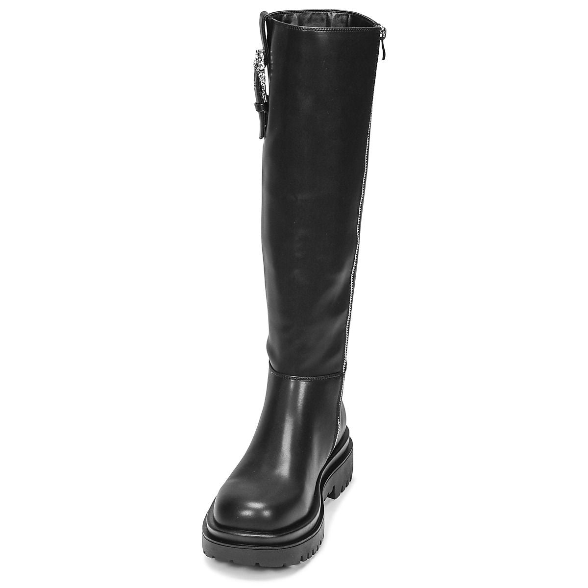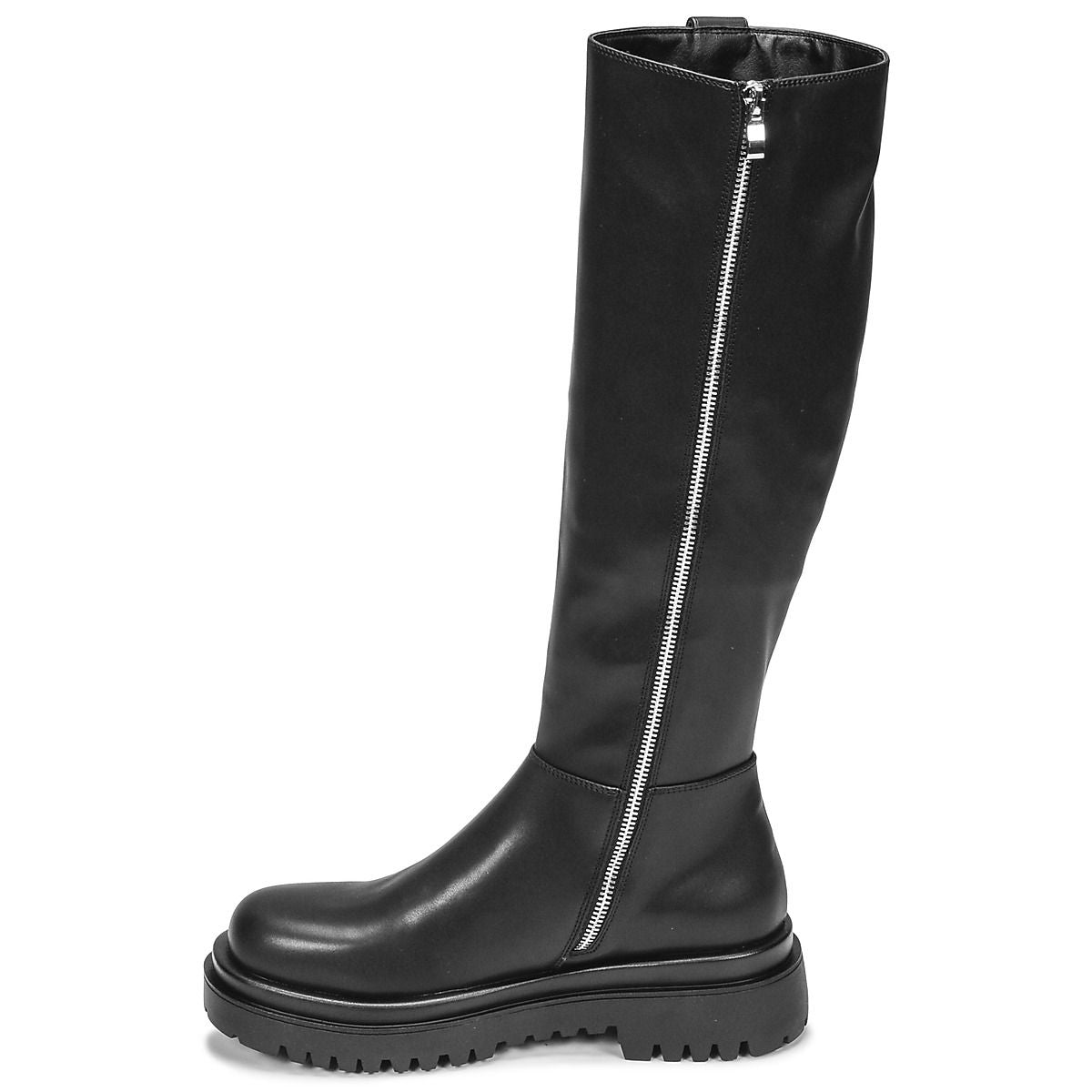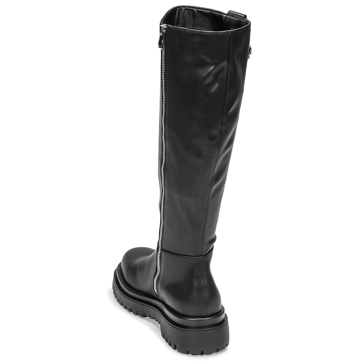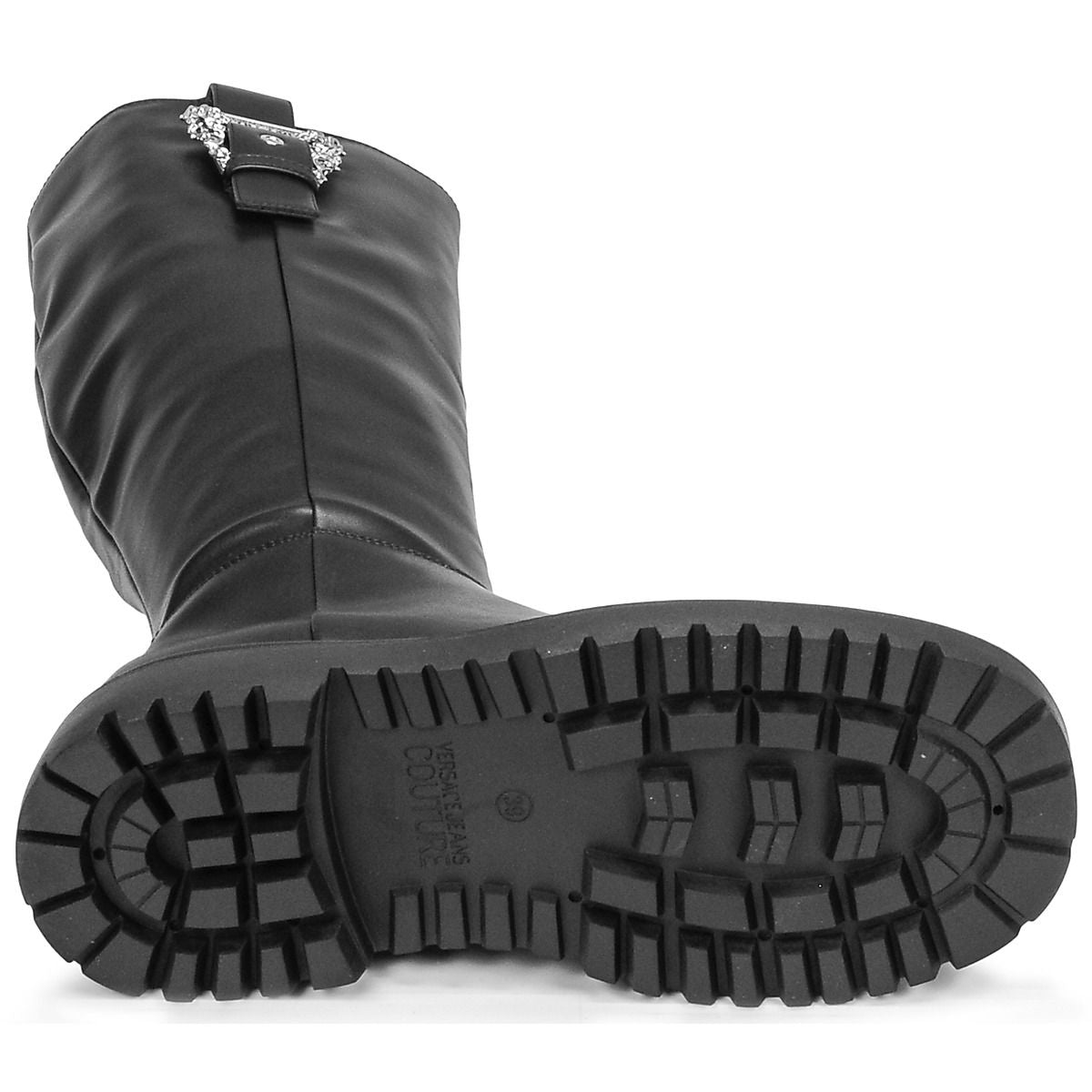 Step into luxurious style with these sophisticated knee-high boots. Designed to make a statement, the boots feature a sleek side zip fastening and an eye-catching baroque buckle that adds a touch of baroque elegance to any outfit. The round toe ensures comfort, while the robust rubber sole offers durability and grip for a confident stride. Perfect for fashion-forward individuals seeking a blend of comfort and opulence.