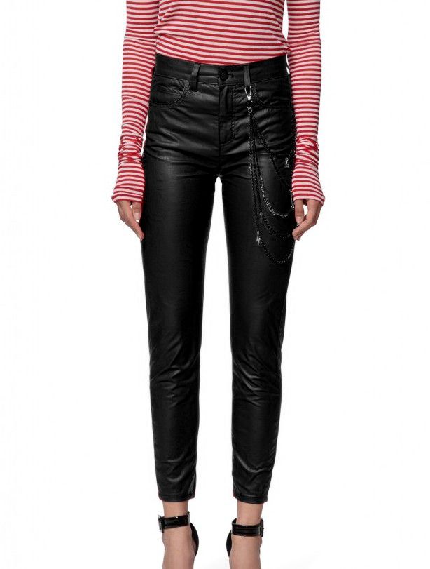 Step into eco-friendly elegance with Gaëlle’s skinny pants, a true blend of sustainability and style. These chic trousers feature a dazzling jewel chain fringe at the loops, offering a unique take on luxury fashion. Effortlessly secure your fit with the classic zipper and button closure, all while embracing the Italian flair for craftsmanship.