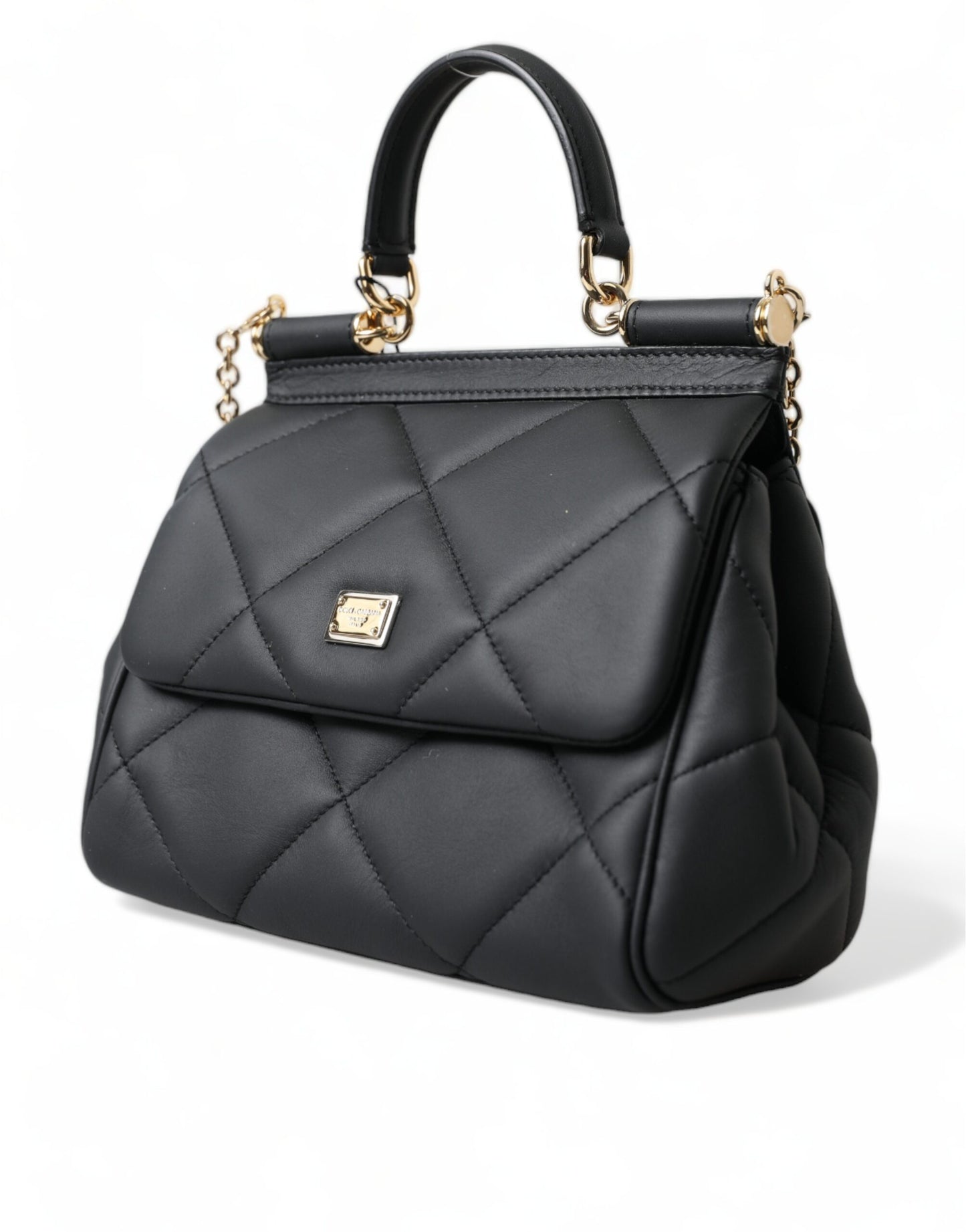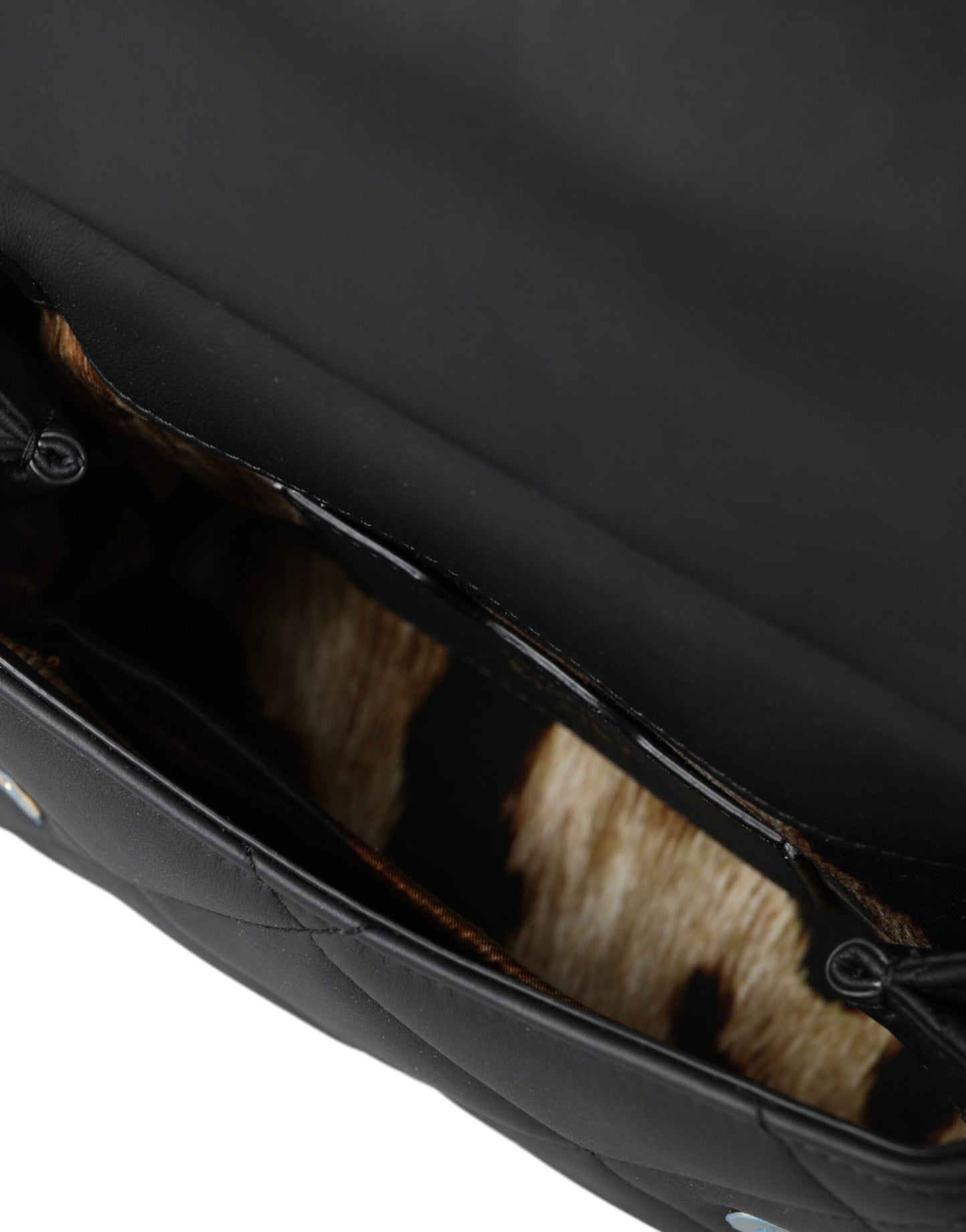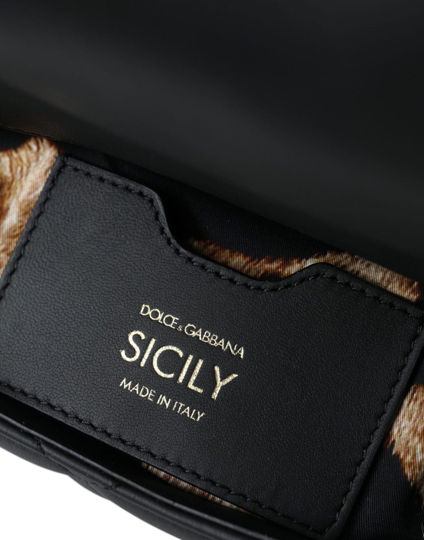 Indulge in the epitome of Italian luxury with the exquisite Dolce & Gabbana Sicily Shoulder Bag. This stunning accessory is more than just a bag; it’s a statement of style and sophistication. Perfect for any occasion, it dazzles with its gold metal detailing against the classic black leather, complemented by the brand’s signature leopard print lining.