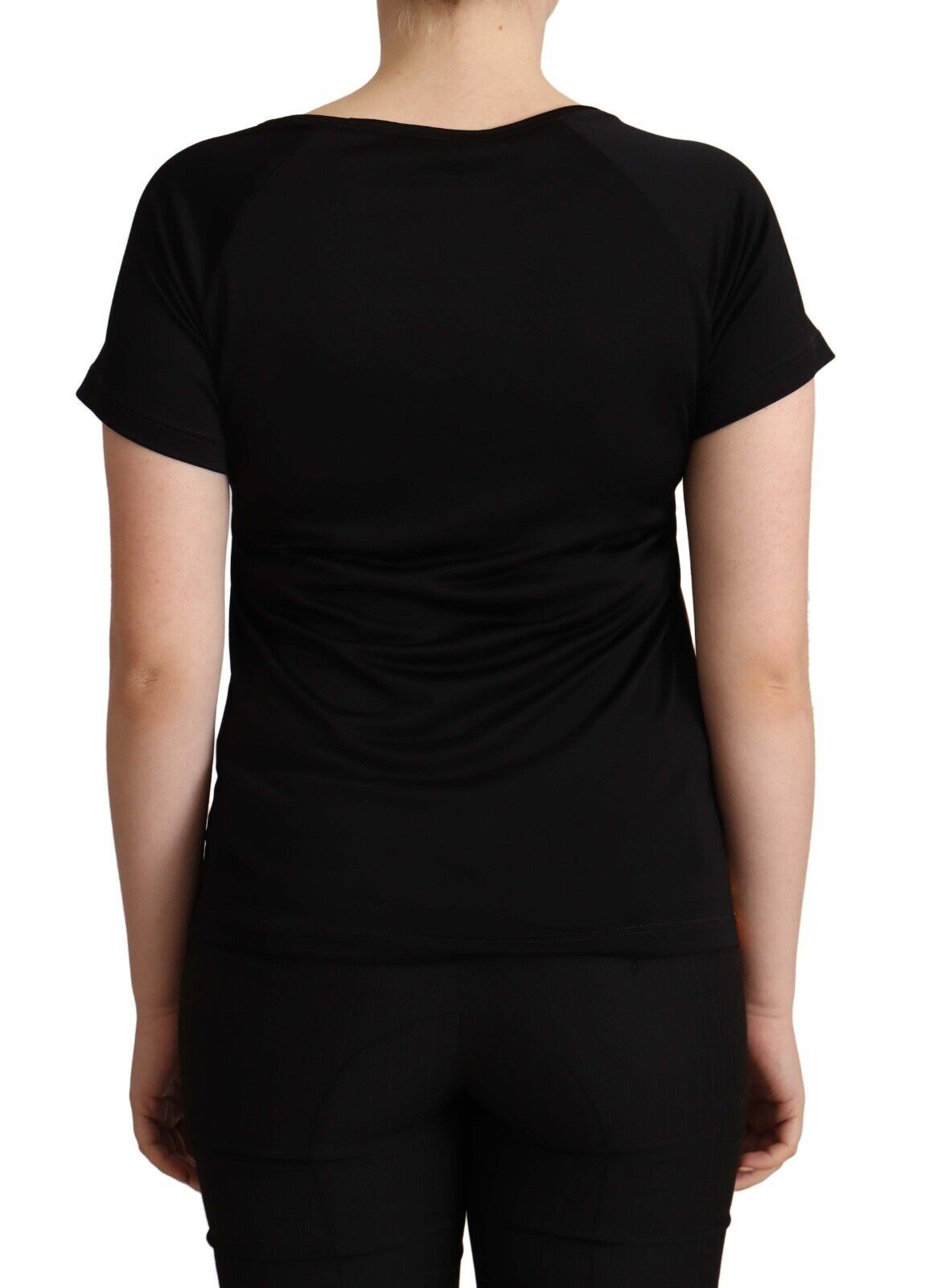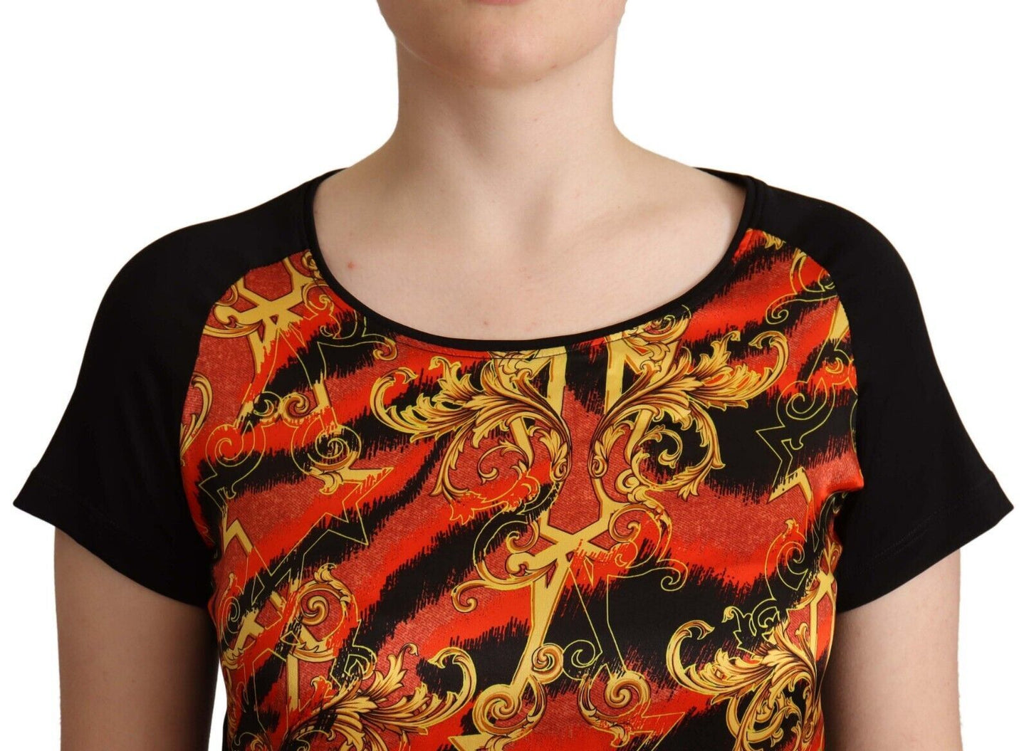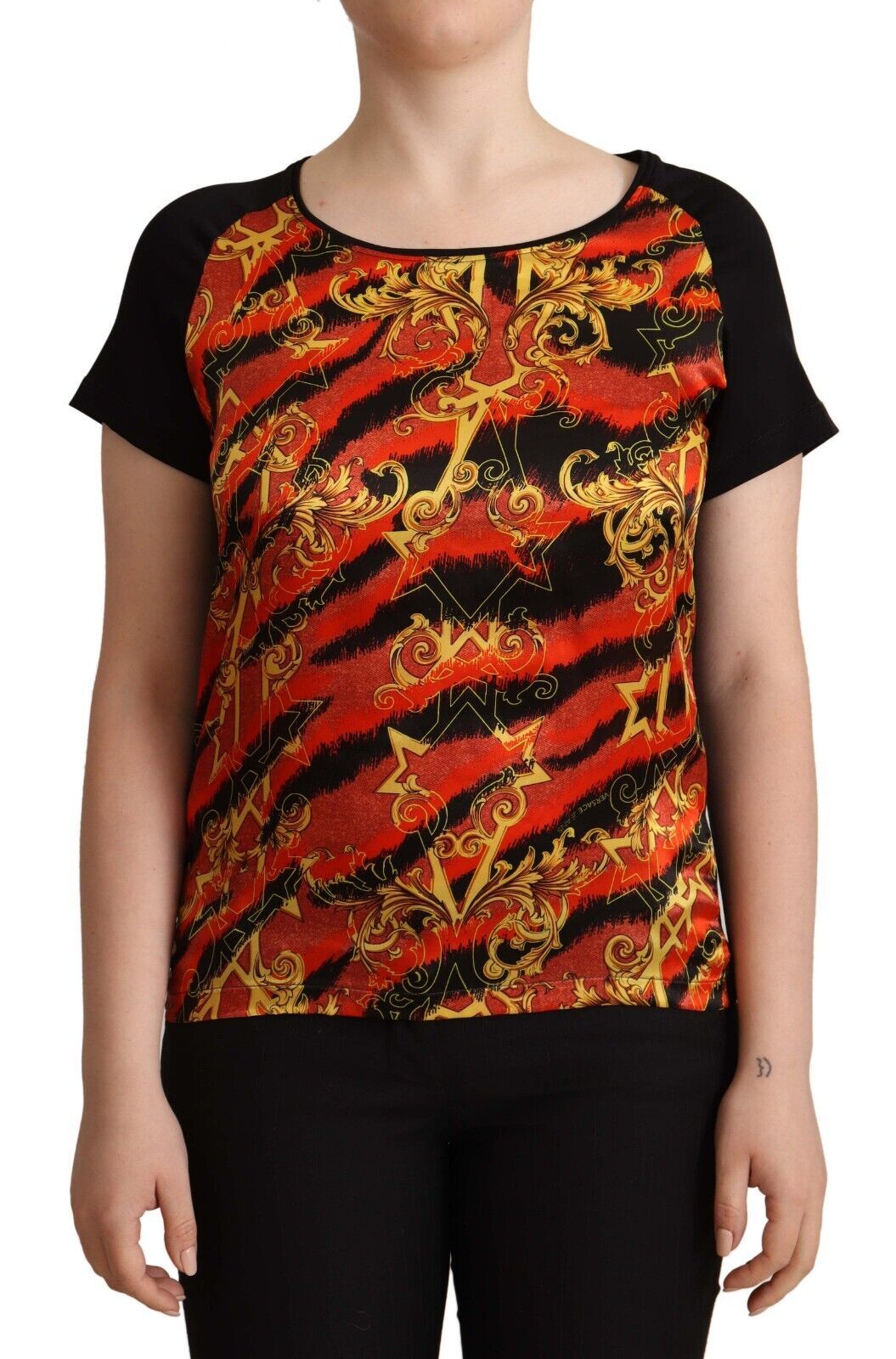 Indulge in the luxurious feel of a 100% Authentic Versace blouse. This chic piece flaunts a gorgeous print, complemented by an elegant design with short sleeves and a classic round neck. Its sleek black and red color palette is accented with the iconic Versace logo details, making it a timeless addition to your wardrobe.