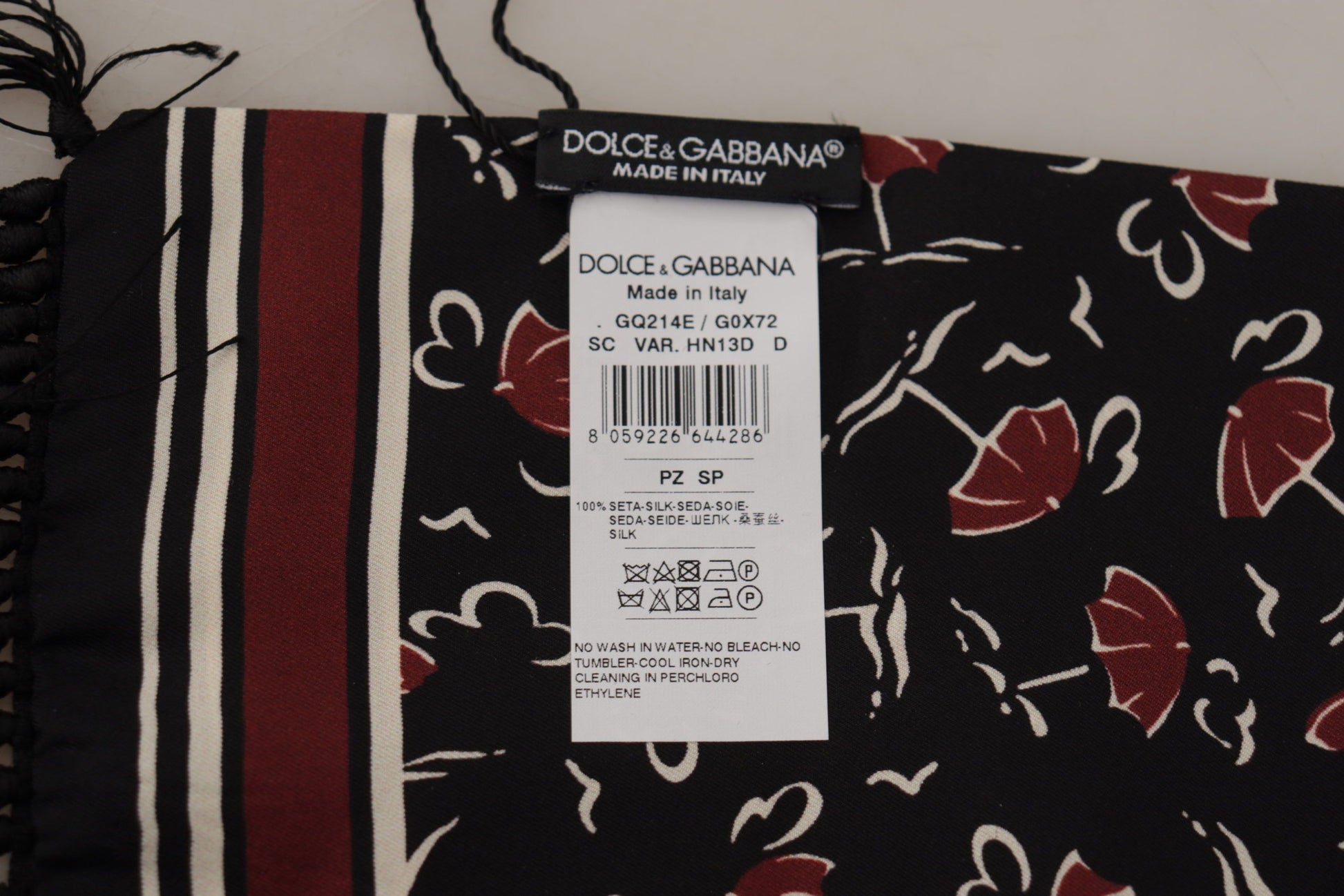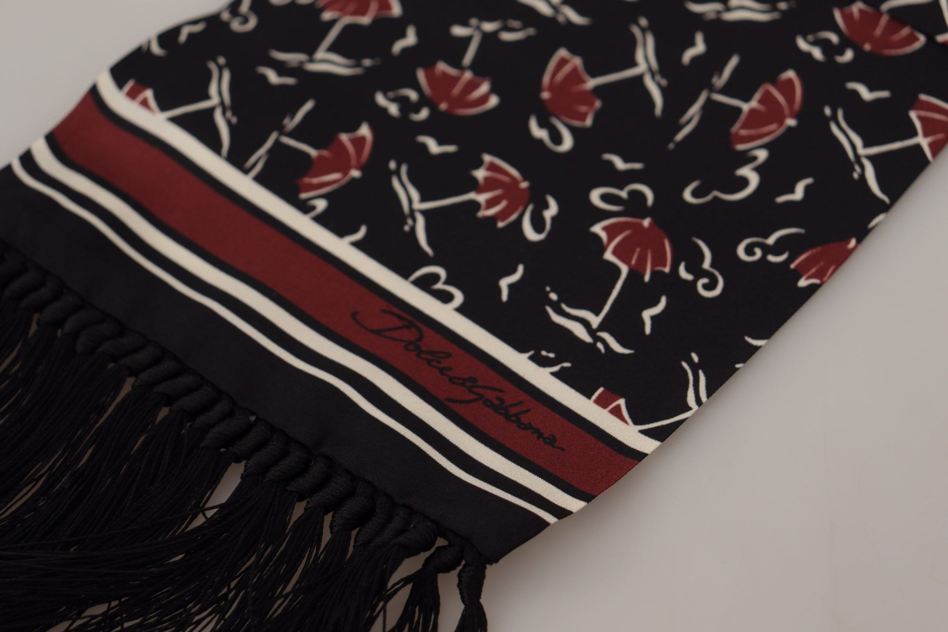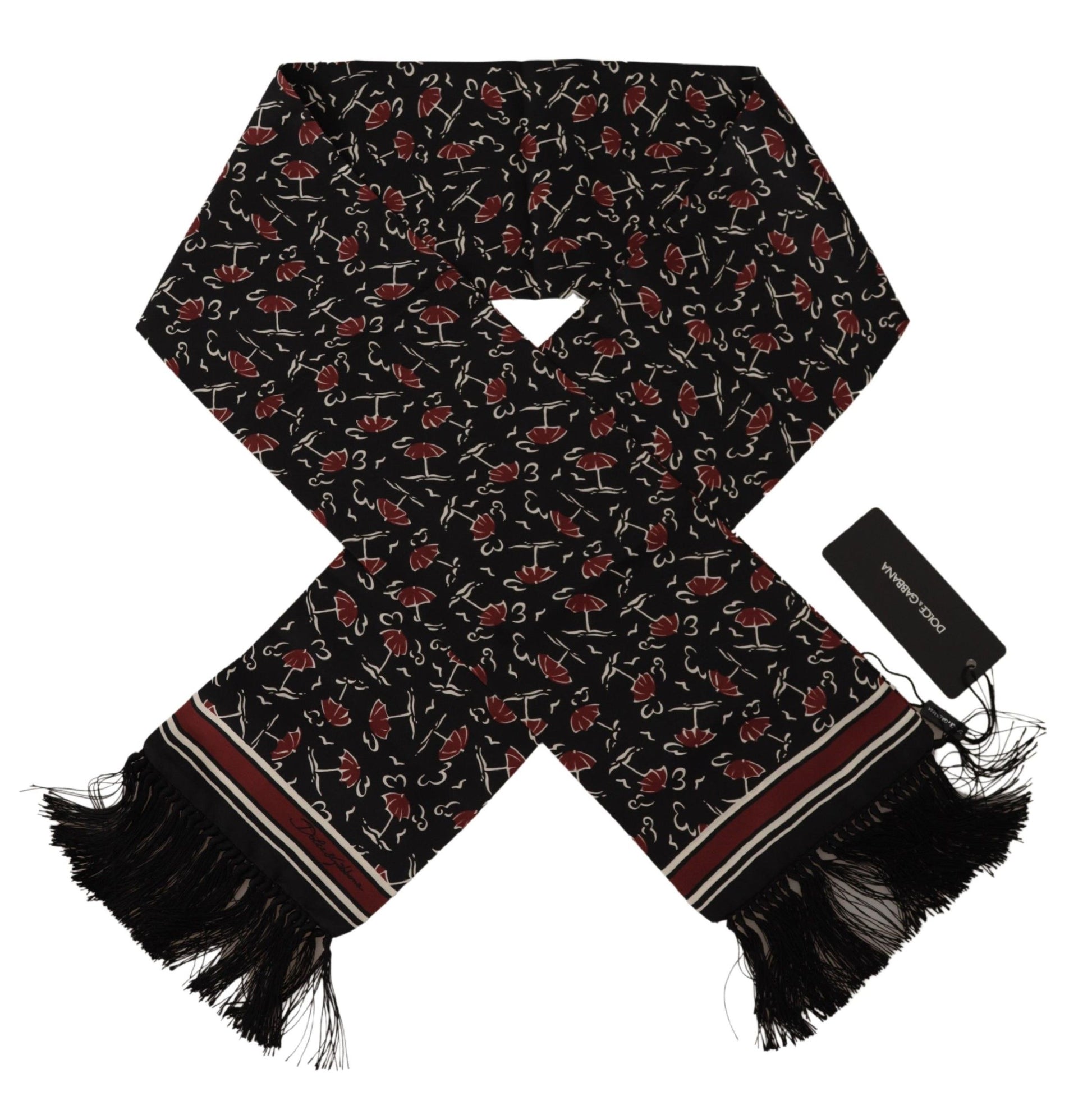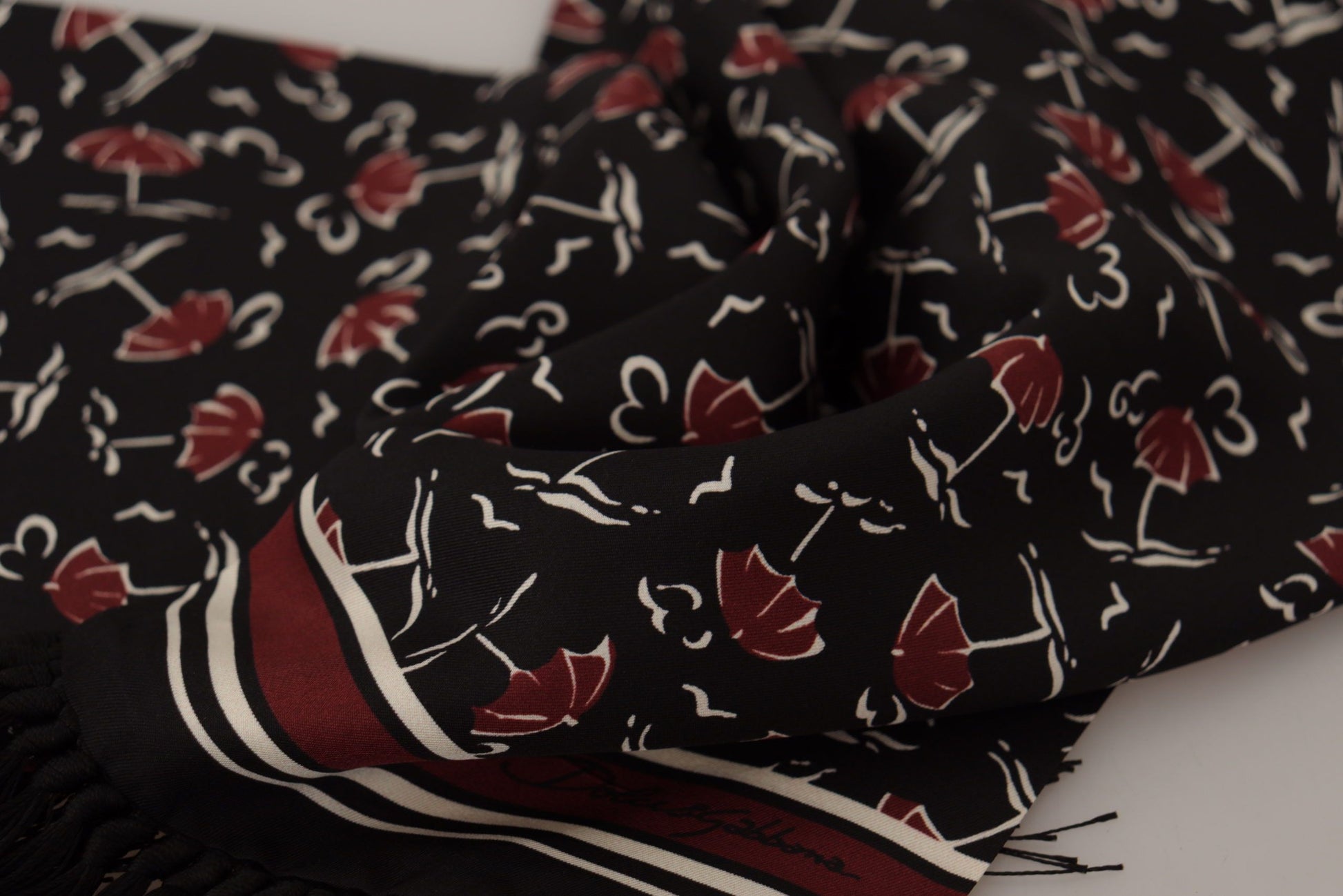 Black Red Umbrellas Patterned Shawl Fringe Scarf