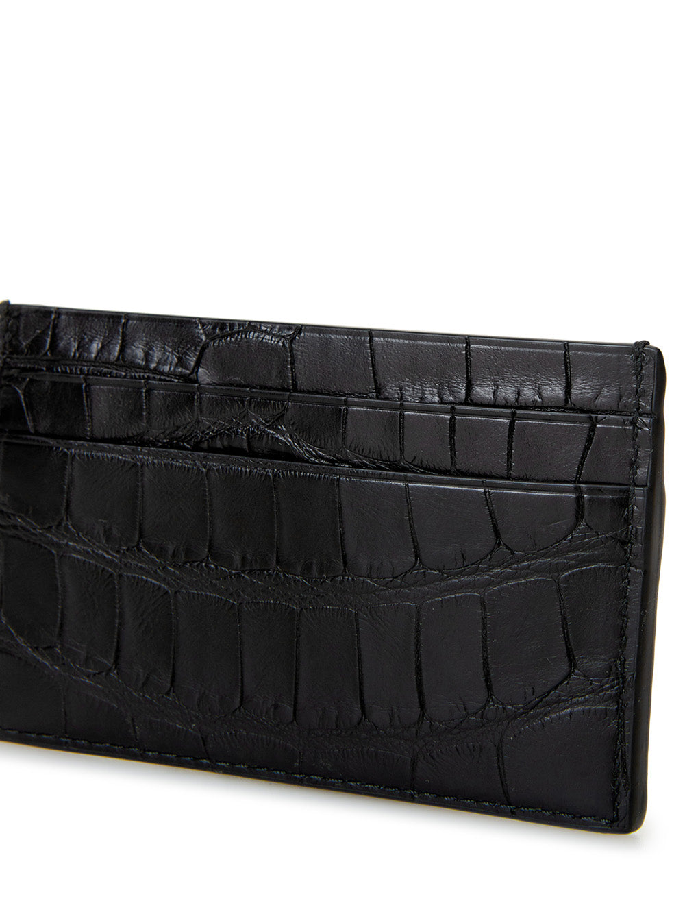Indulge in the epitome of sophistication with this luxurious Bottega Veneta Black Reptile Leather Card Holder. Gorgeous and brand new with tags, this 100% Authentic accessory is designed to elevate your style and organize your essentials with ease. The holder features five card slots, allowing for maximum functionality in a sleek, compact design. Crafted with precision in Italy, this card holder measures 10×7 cm, making it the perfect size for slipping into a pocket or clutch.