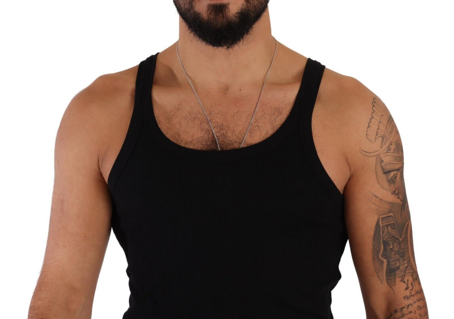 Indulge in the epitome of luxury with this stunning 100% Authentic Dolce & Gabbana tank top T-shirt. Crafted with impeccable attention to detail, this piece radiates elegance with a sleek black hue and understated logo accents. Designed in Italy, this T-shirt promises not only style but also supreme comfort, thanks to its high-quality cotton blend with just the right touch of stretch. Perfect for under your finest garments or as a statement piece on its own.