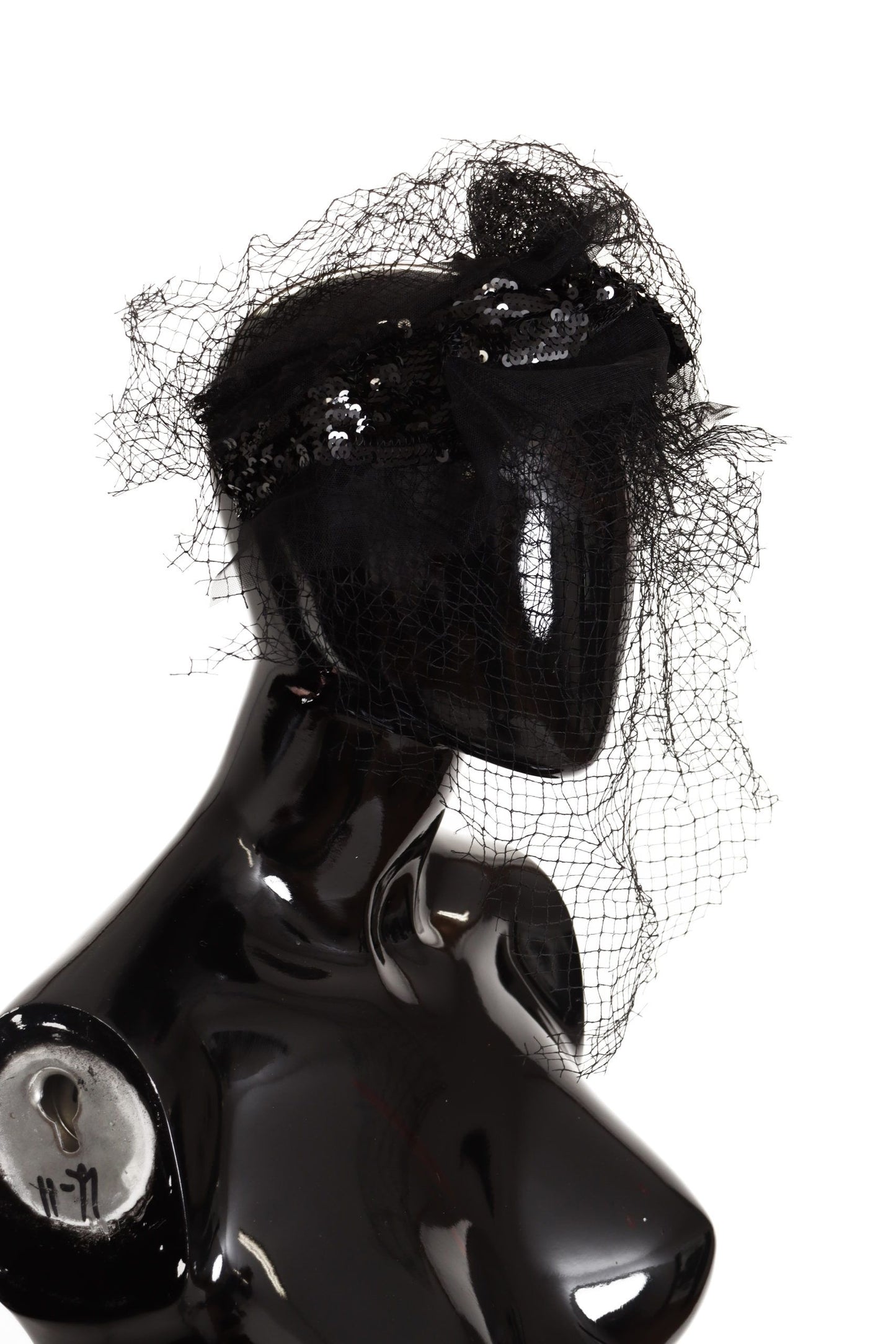 Adorn yourself with the epitome of luxury in this exquisite Diadem Fascinator by Dolce & Gabbana. Crafted from a premium blend of nylon and silk, this headpiece boasts a stunning array of studs and sequins, guaranteed to make a sophisticated statement. With its timeless black hue and expert Italian craftsmanship, this Dolce & Gabbana creation is more than an accessory—it’s a crowning touch of elegance for the discerning fashionista.