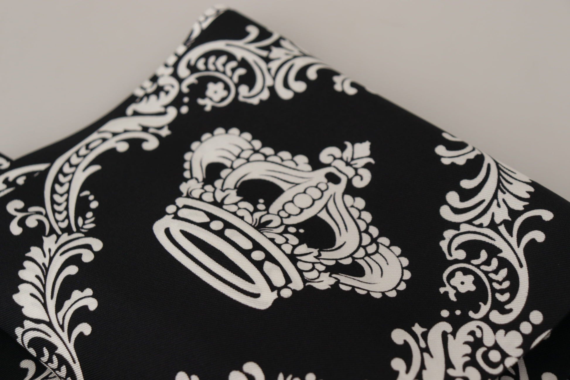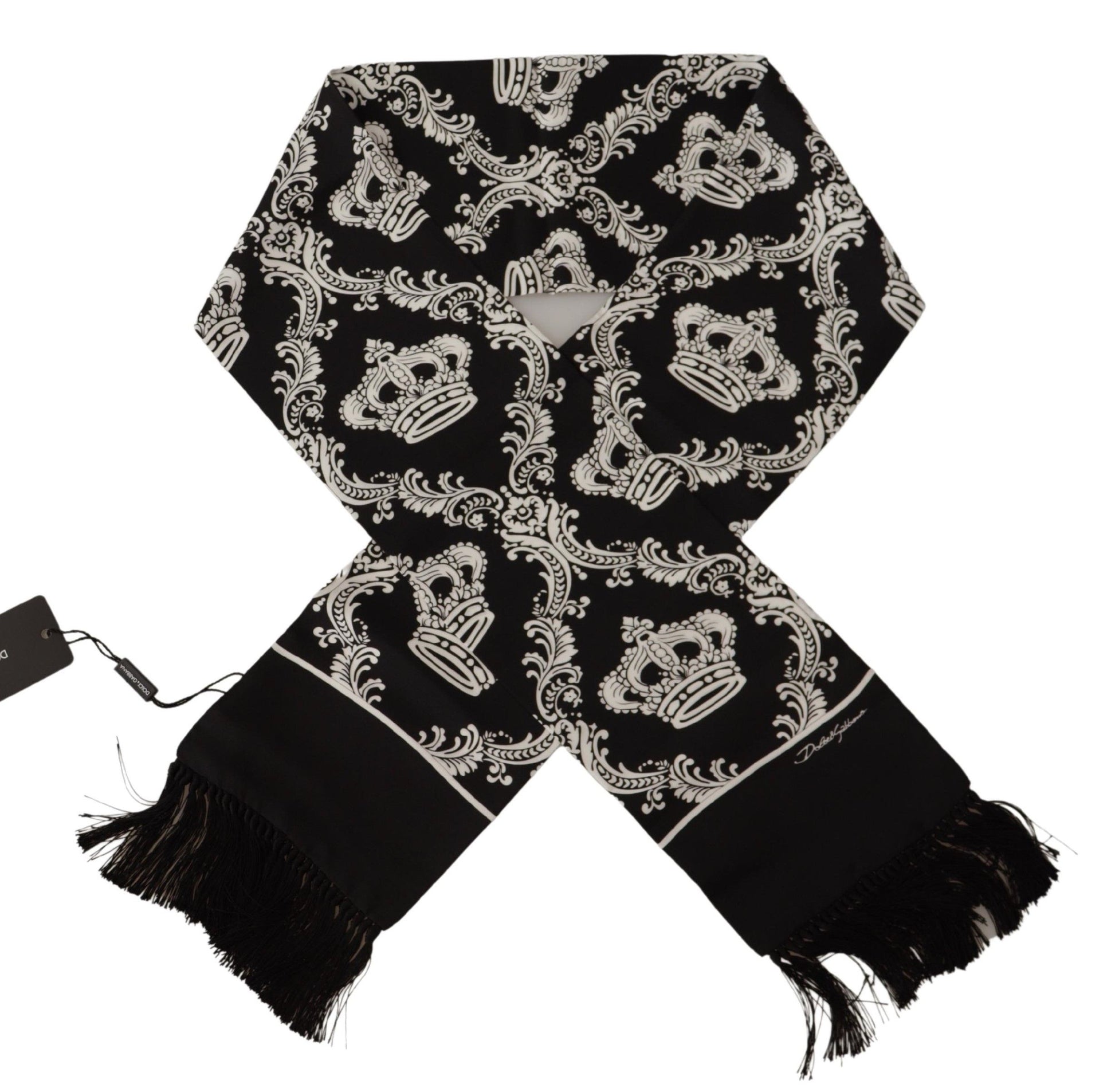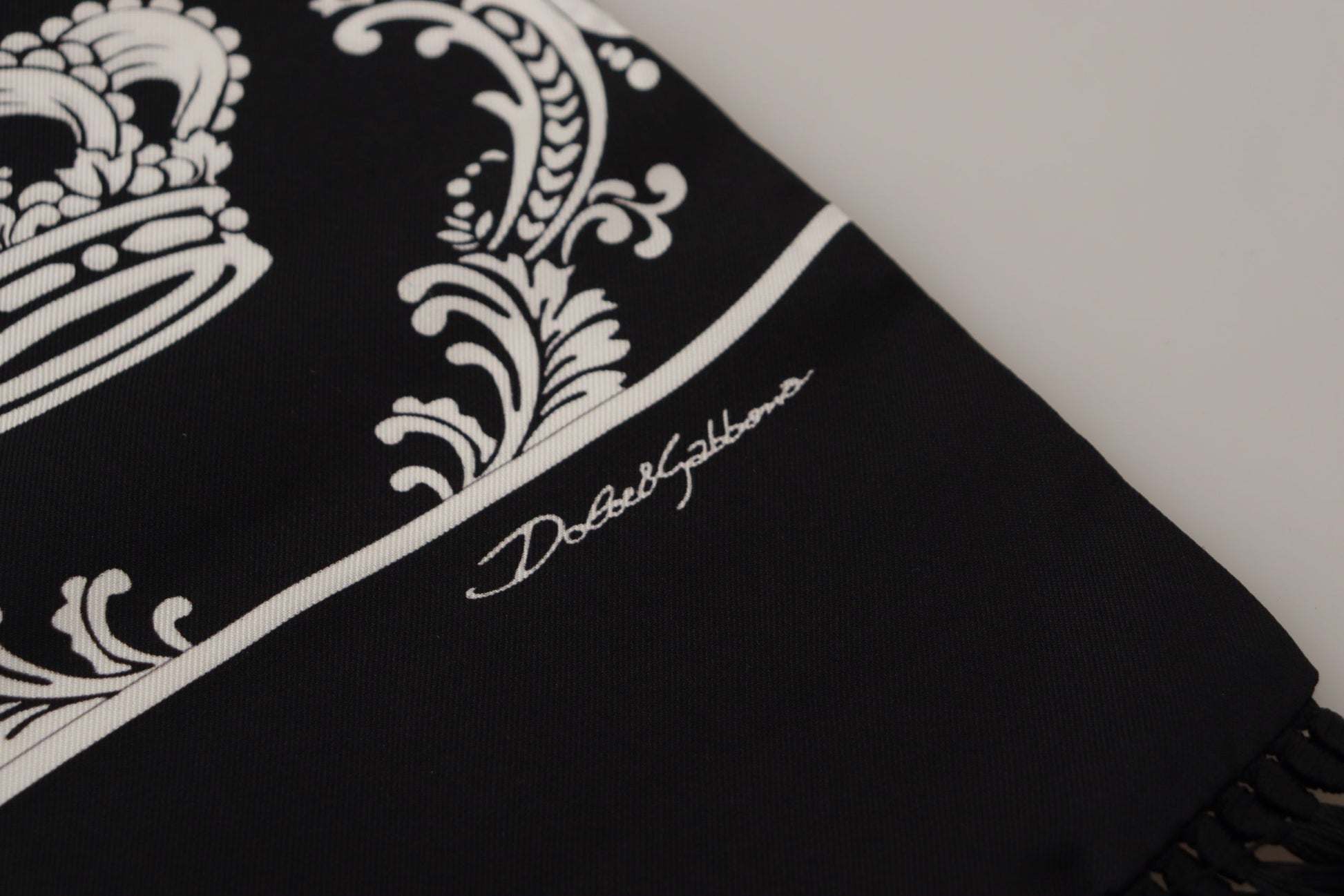 Black Silk Royal Crown Print Logo Shawl Fringe Scarf