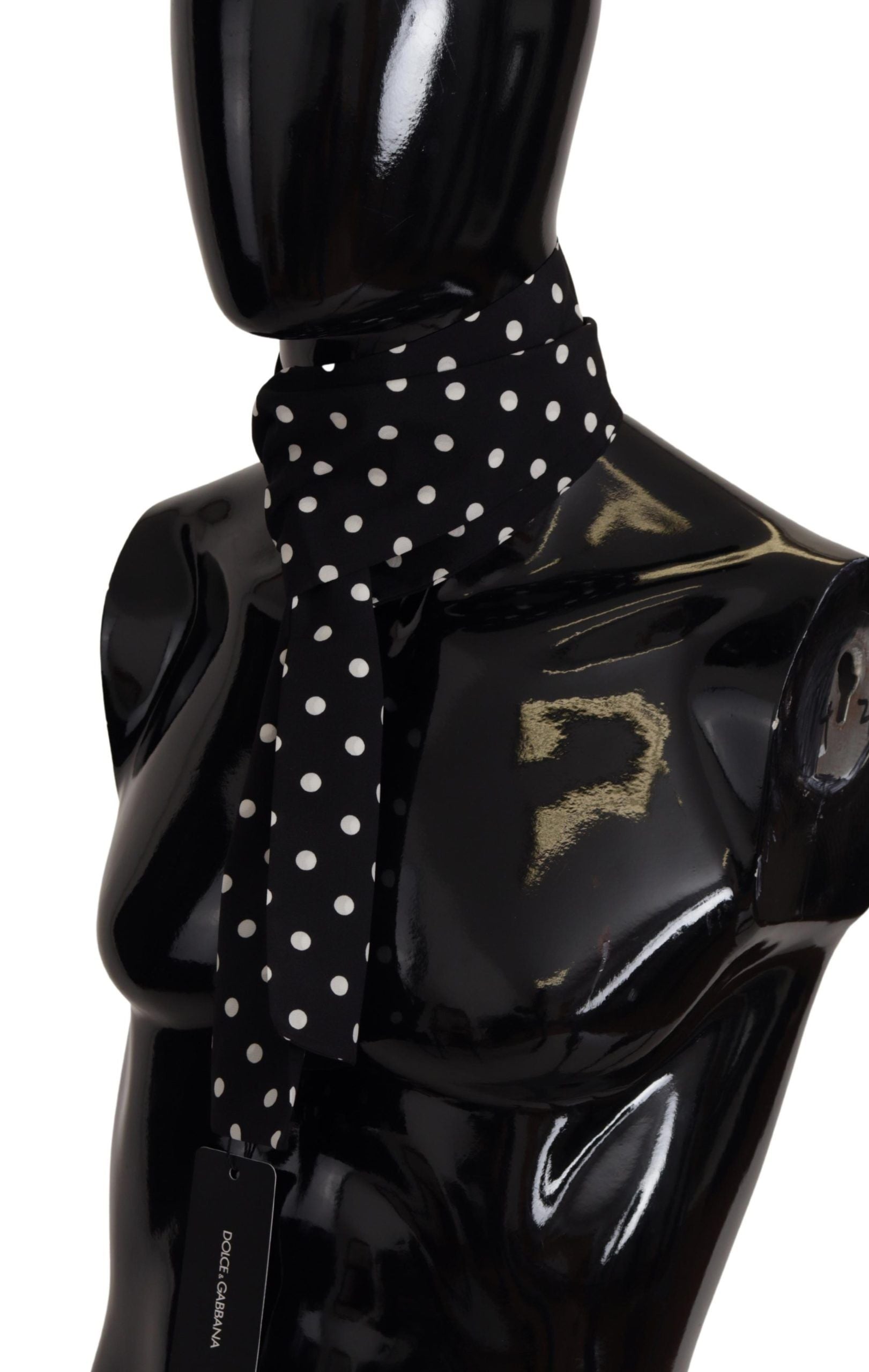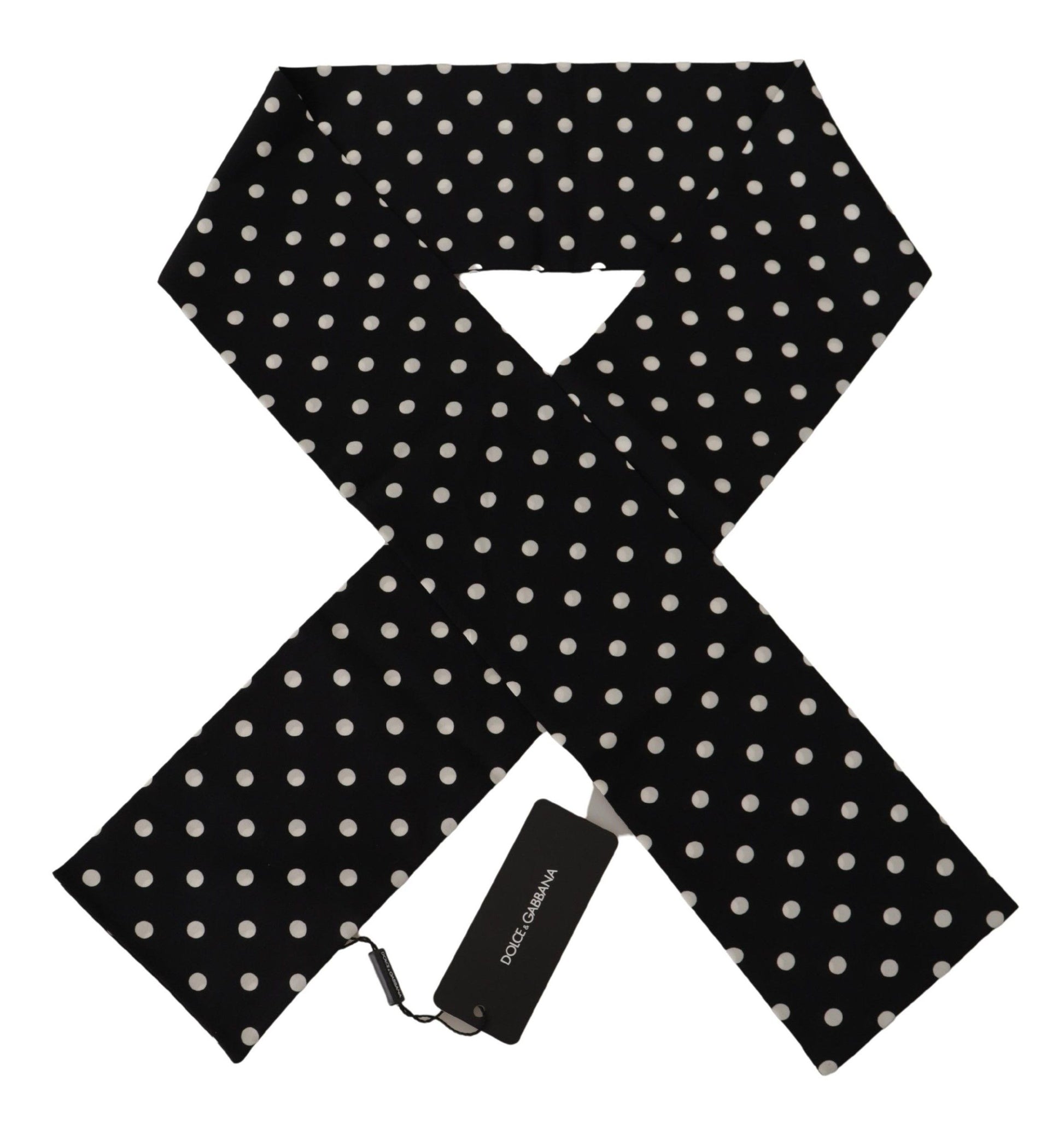 Black Silk Skinny Polka Dot Mens Scarf Wrap Shawl Scarf