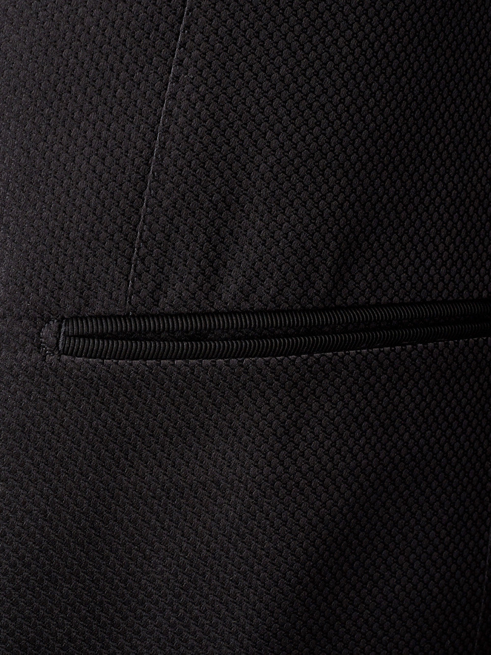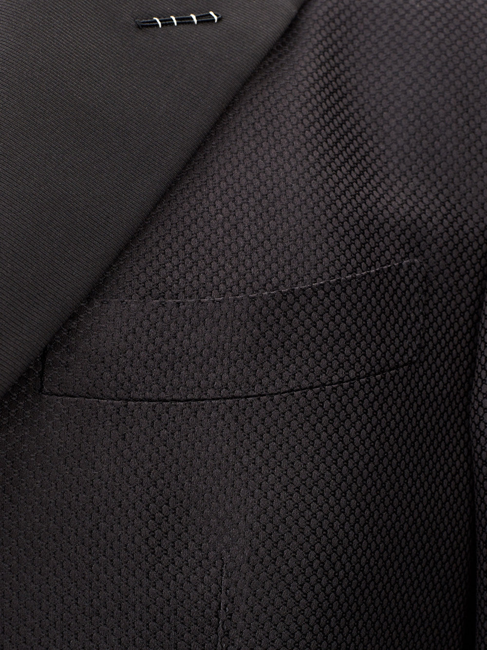 Introducing a touch of sophistication to your wardrobe with our exquisite smoking jacket. This piece is brand new with tags, emanating luxury and style, perfect for fashion-forward individuals. Crafted from a refined blend of 68% silk and 32% cotton, the jacket features a classic collar and a sharp front one-button closure. With its regular fitting and sleek black hue, it’s versatile for a range of occasions, making a statement at every turn. The jacket is elegantly detailed with pockets and sleeve accents, and is fully lined for your comfort.