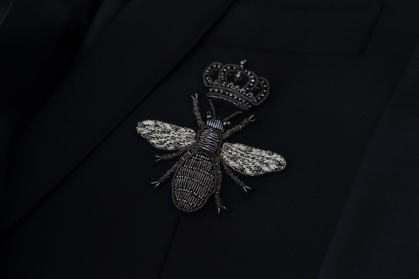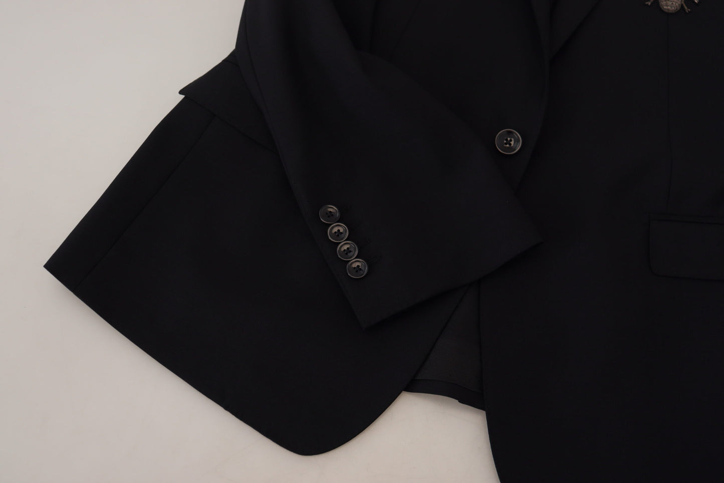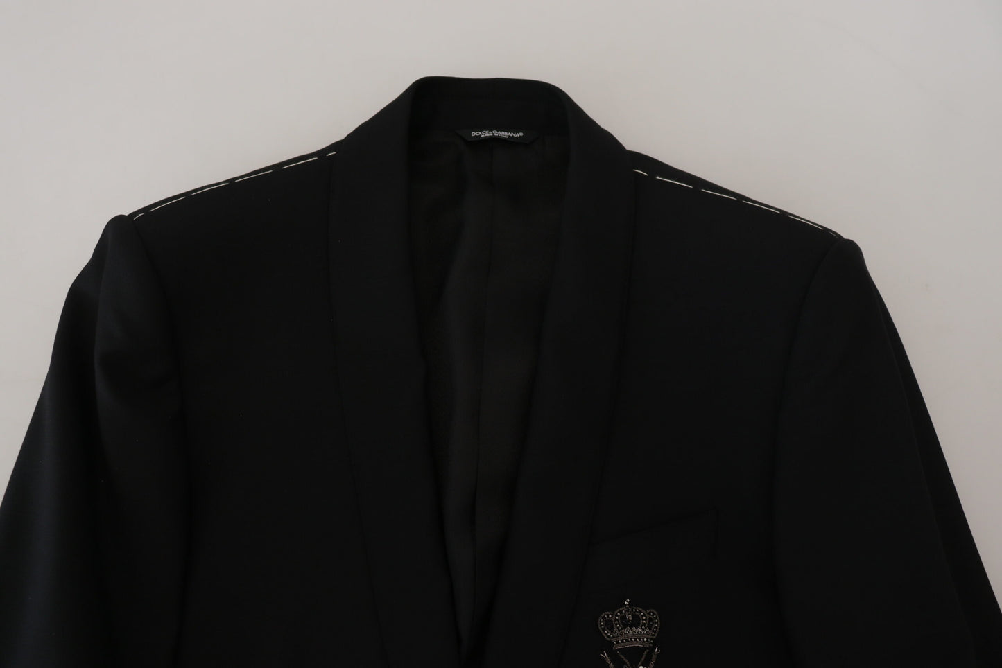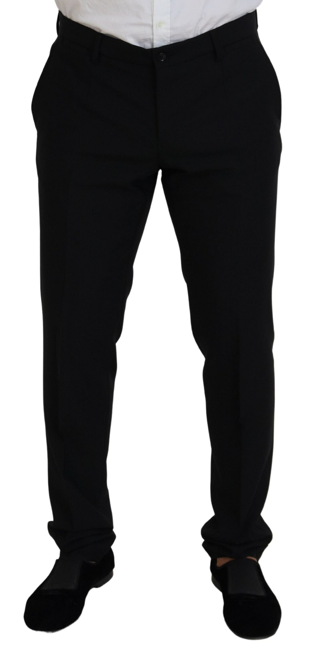 Step into the world of luxury with this Dolce & Gabbana MARTINI 3-piece suit, a symbol of sophistication and style. Tailored for the discerning gentleman, the suit features a sleek black hue and a slim fit cut enhancing the silhouette. The single-breasted blazer boasts a shawl lapel, button cuffs, and convenient flap pockets, paired with matching trousers with an impeccable mid-rise fit and a waistband ready for belt accessorizing. The waistcoat adds an extra layer of finesse, ensuring you stand out at any formal event or business gathering. Crafted from the finest 100% Virgin Wool with a premium lining, this suit offers comfort without compromising on elegance. Proudly made in Italy, it reflects the exquisite craftsmanship and attention to detail that is synonymous with the brand.