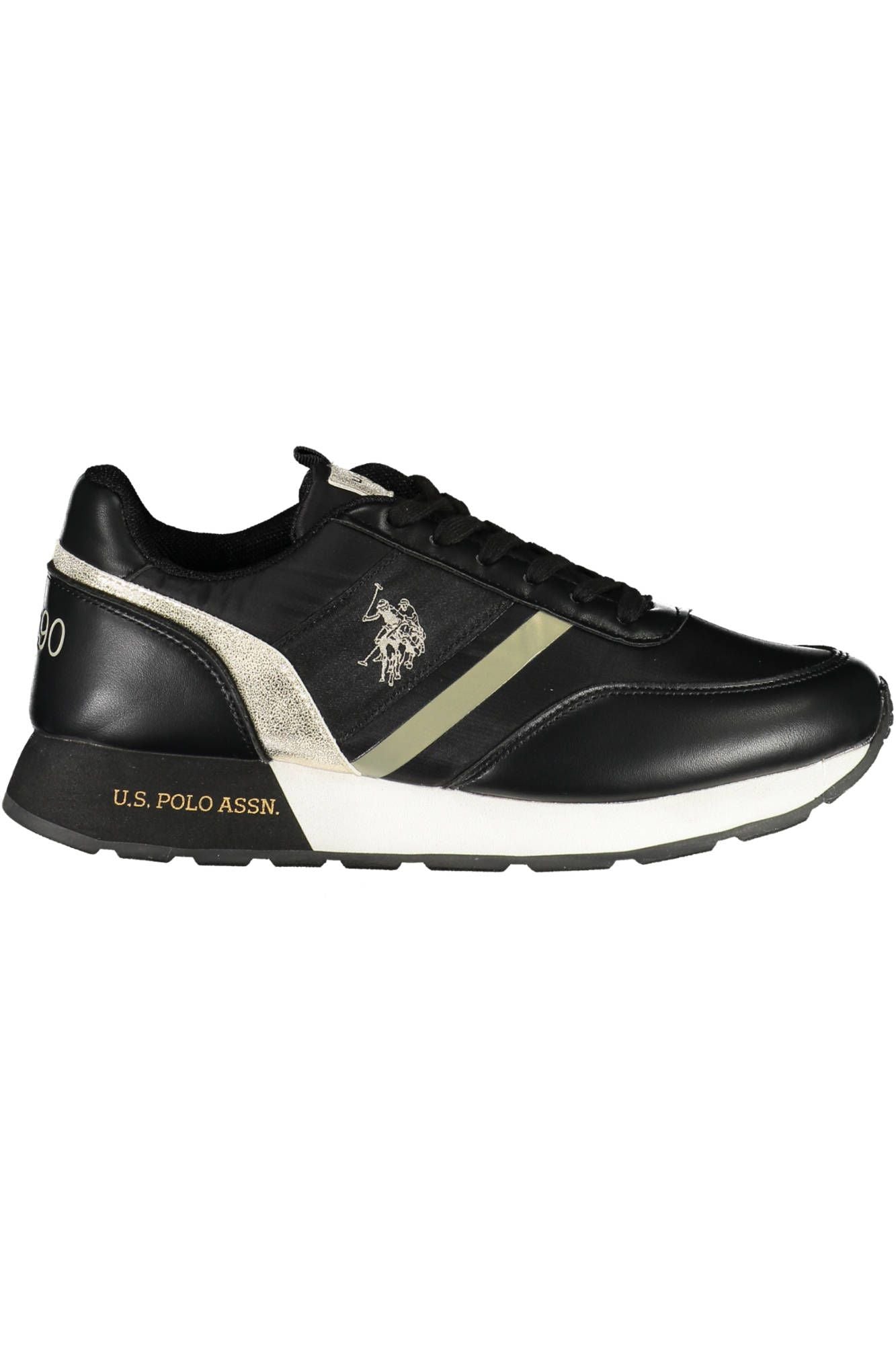 Embrace style and comfort with these sleek black sports shoes featuring laces and eye-catching contrasting details, complemented by the distinctive logo of U.S. POLO ASSN. Crafted from durable polyester, these sneakers promise both longevity and fashion-forward appeal.