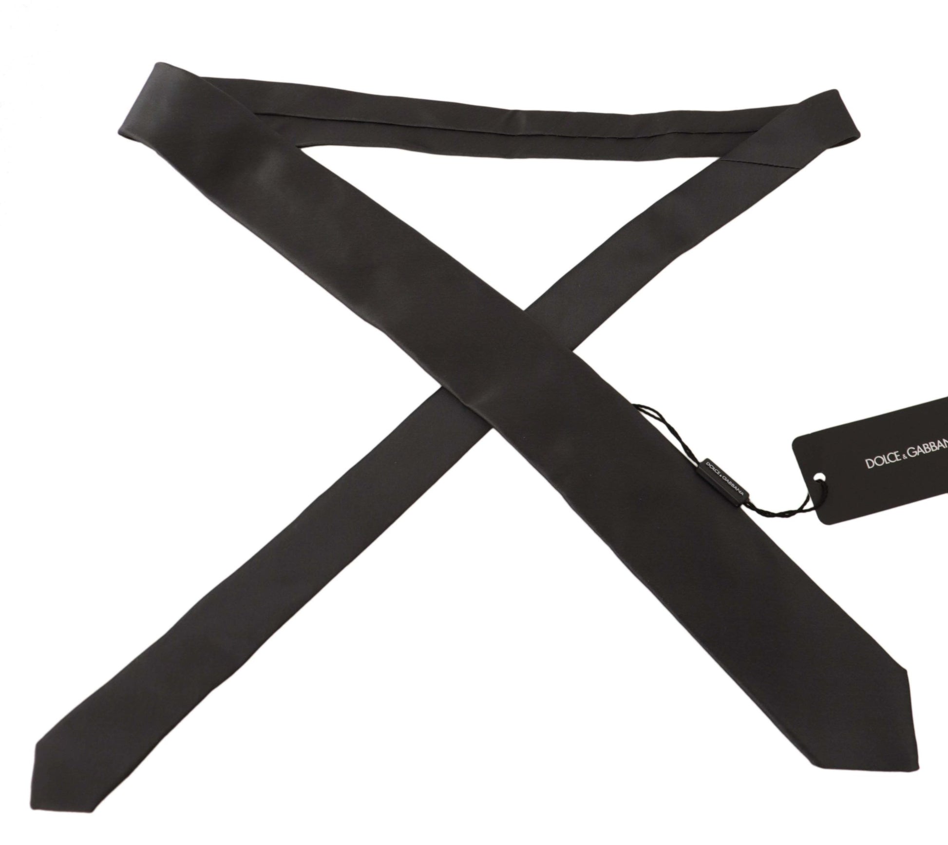 Exude sophistication with this absolutely stunning black tie from Dolce & Gabbana. A perfect addition to any refined gentleman’s wardrobe, this 100% authentic tie is brand new with tags and crafted from the finest silk to ensure a smooth, luxurious feel. Made in Italy, its sleek design and premium quality speak volumes of elegance.