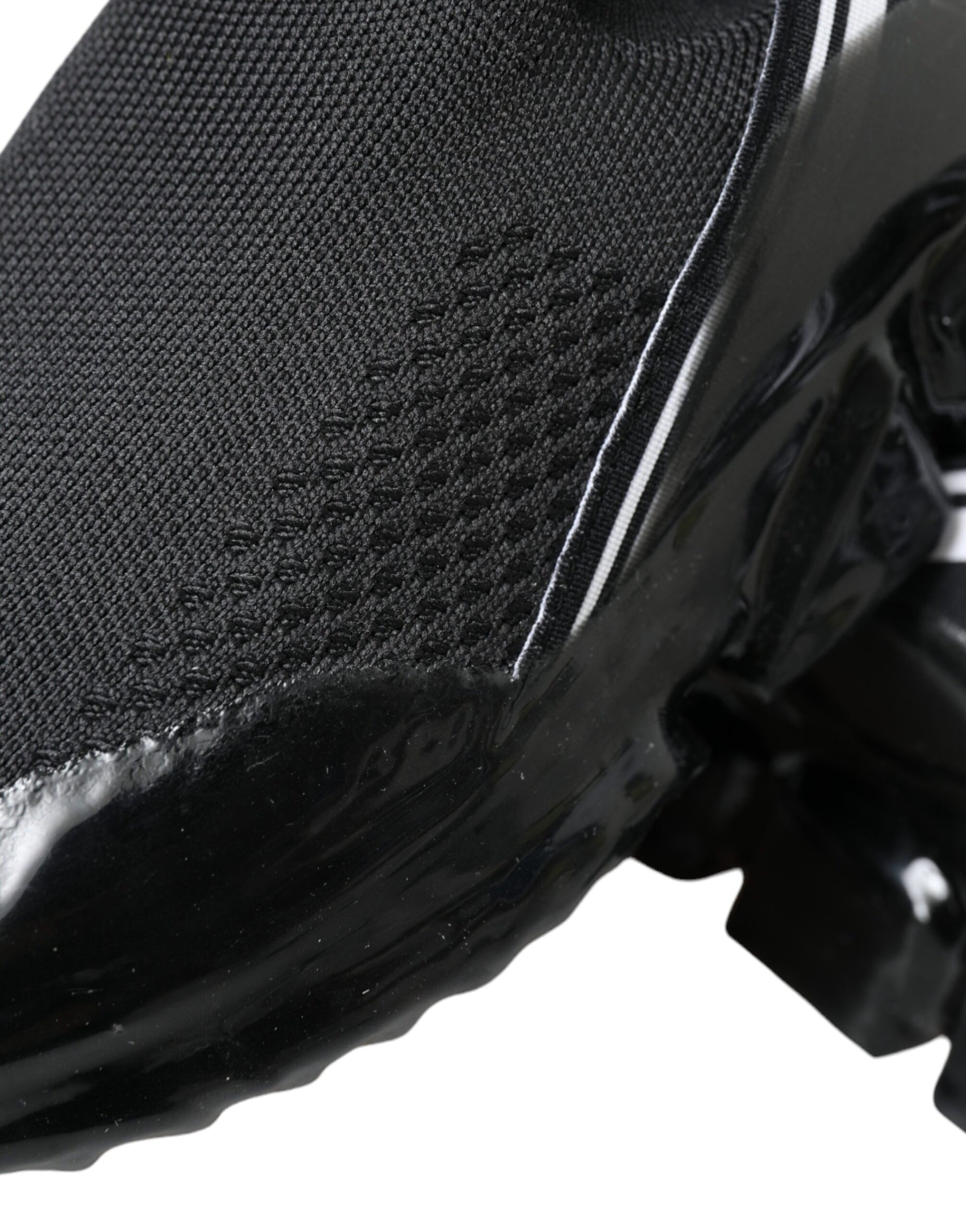 Step out in style with these stunning Sorrento sneakers, expertly crafted by the renowned Dolce & Gabbana. These black and white shoes boast a sleek, round toe silhouette combined with a comfortable slip-on design. Accentuated by elasticated logo tape at the back, they promise a fashion-forward look. With a sturdy rubber sole, and a luxe branded insole, these sneakers offer both supreme comfort and impeccable style. Originating from Italy, they are a testament to exceptional craftsmanship and exclusive design.