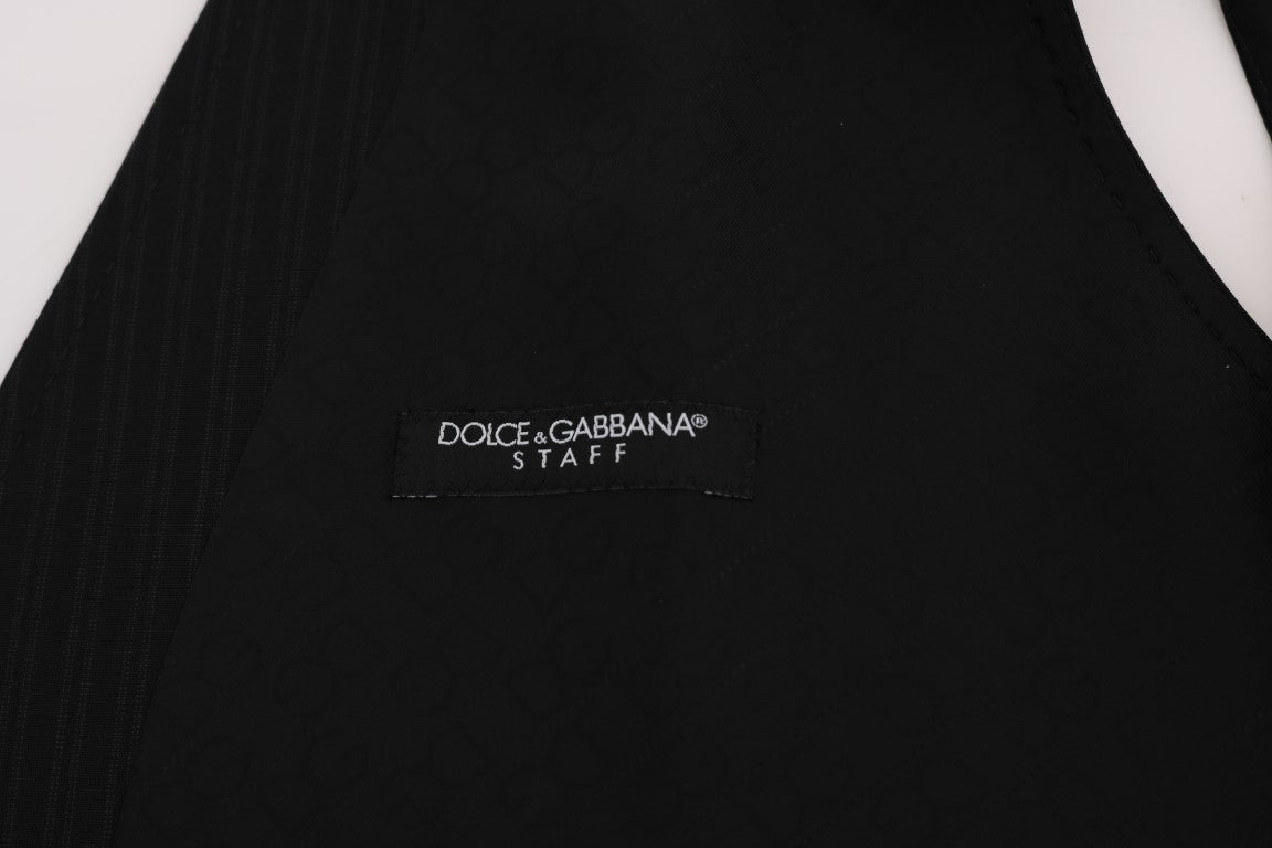 Step into the spotlight with this stunning Dolce & Gabbana waistcoat. Perfect for sophisticated layering, this single-breasted vest is a blend of classic styling and modern luxury. With a sleek black striped design, full button closure, and an adjustable back waist strap, it’s guaranteed to elevate your formal attire. A must-have for the discerning gentleman.