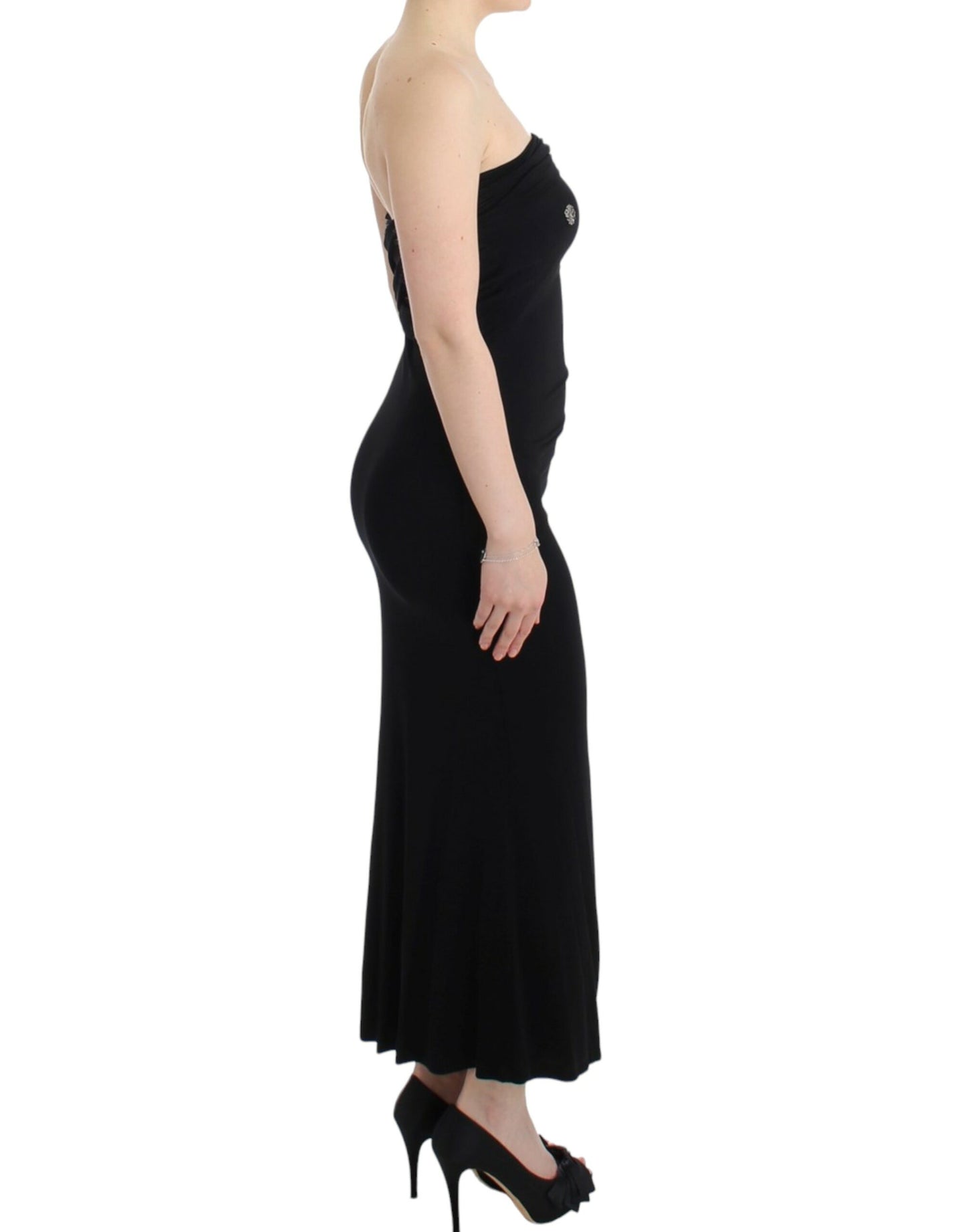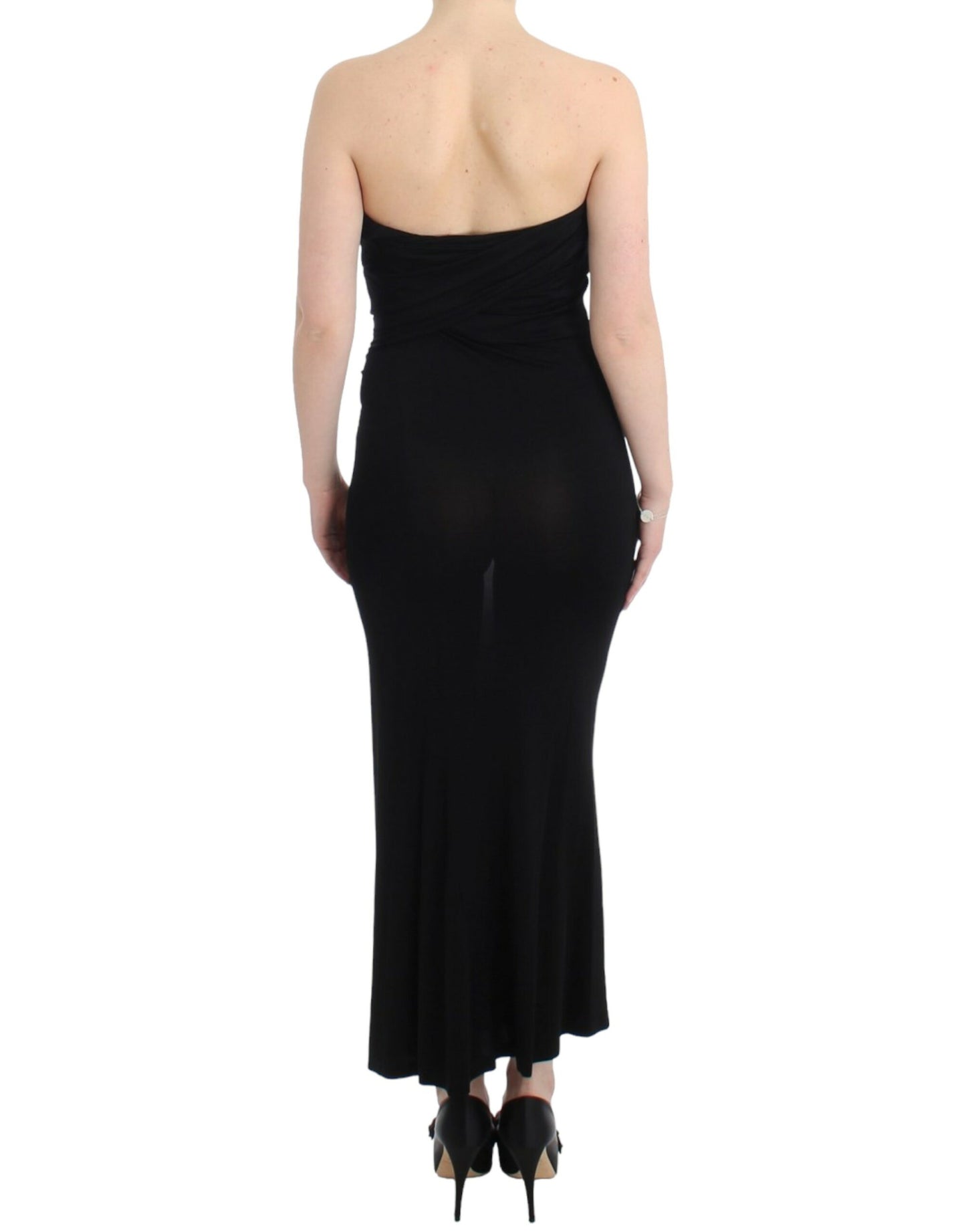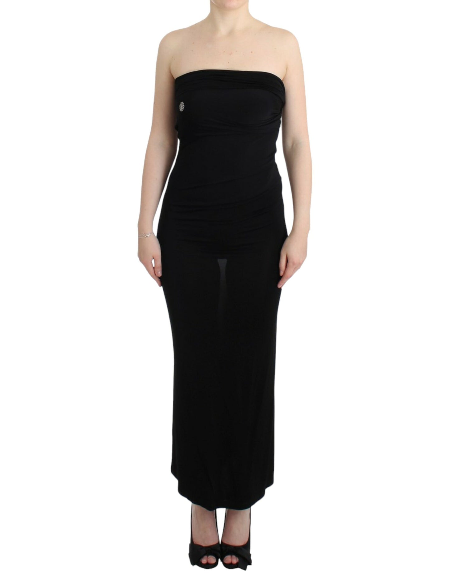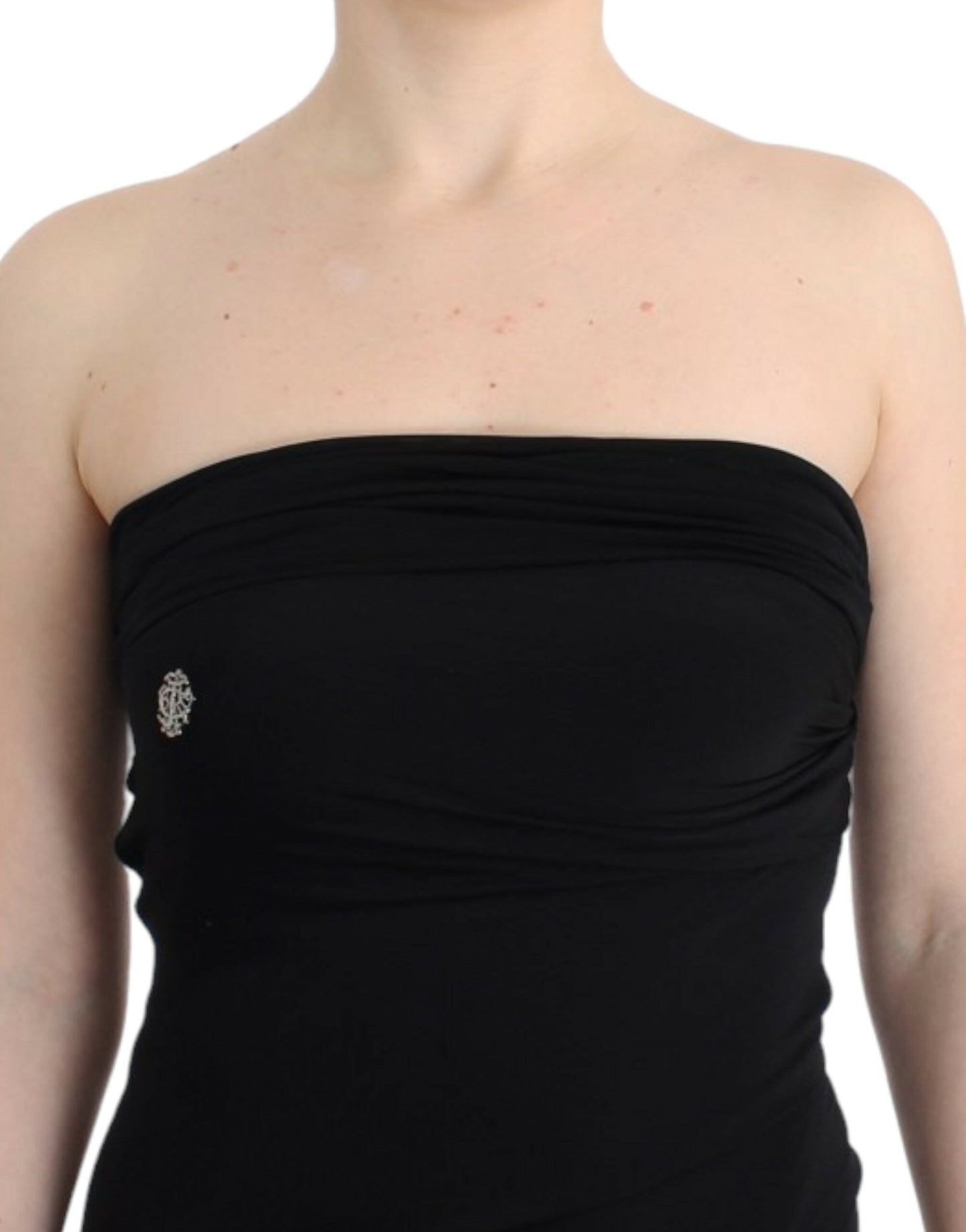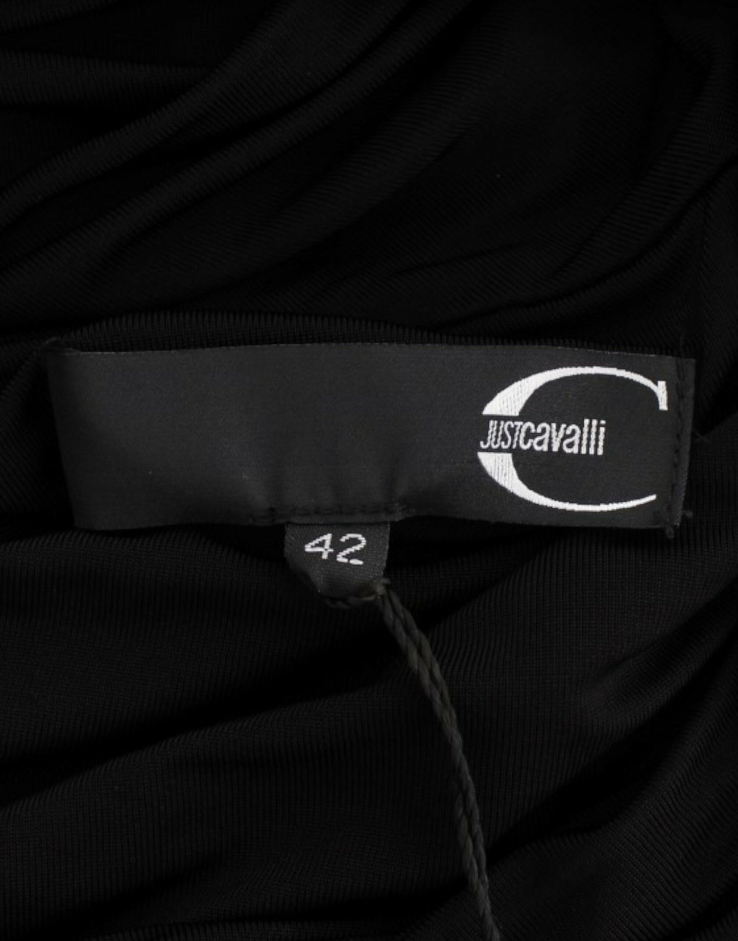 Indulge in the epitome of evening elegance with this stunning Cavalli strapless black maxi dress. Its sleek design is accentuated by a touch of glamour with its silver metal detailing, ensuring a dazzling entrance at any high-end event. The form-fitting style, crafted from a luxurious blend of viscose and elastane, promises a figure-flaunting silhouette that’s both comfortable and chic. This dress comes new with tags, ensuring its authenticity and quality, while Cavalli’s impeccable attention to detail is evident in the logo embellishments. A complementary zipper cover bag and store bag are included to maintain its pristine condition.