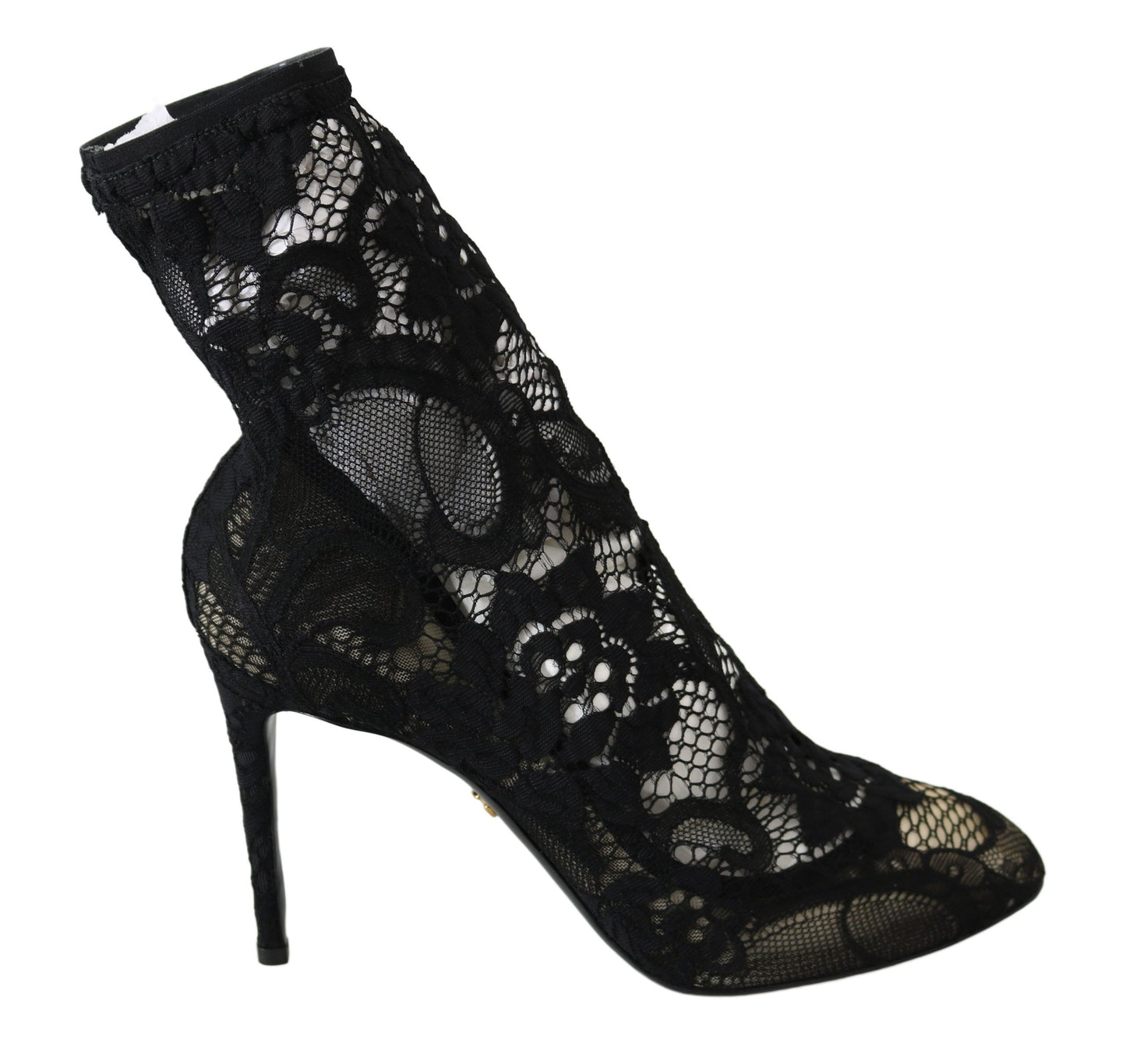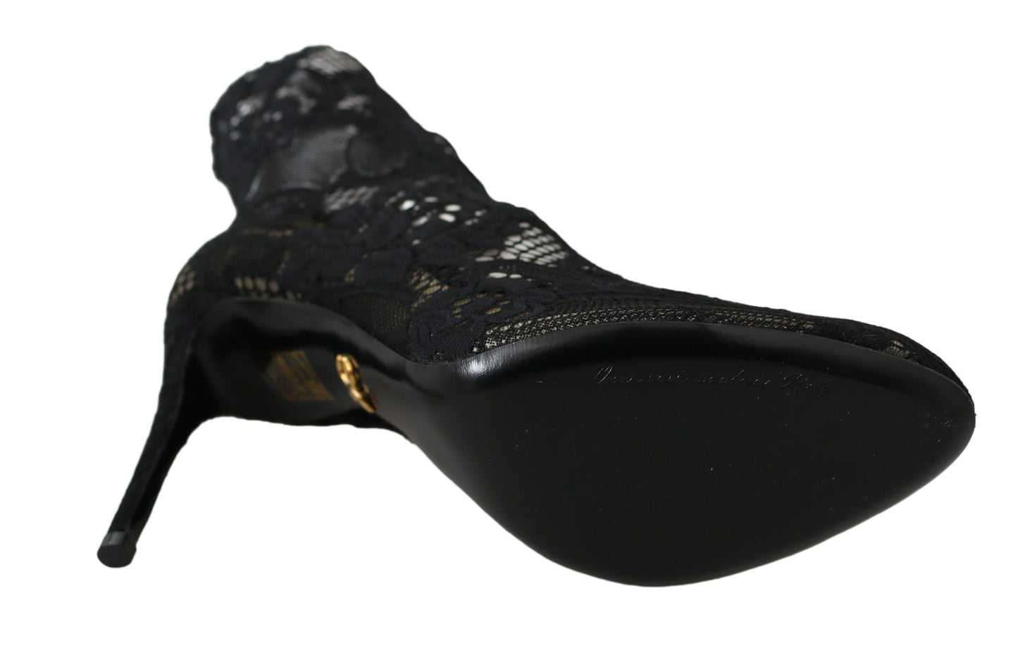 Step into luxury with these exquisite Dolce & Gabbana bootie pumps. Crafted from a soft stretch lace blend, these stunning black booties are a true representation of Italian craftsmanship and elegance. Perfectly blending style with comfort, their high-quality design is guaranteed to elevate any ensemble. Add a touch of sophistication to your footwear collection today!