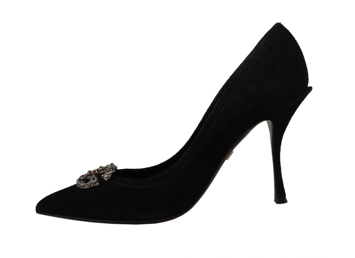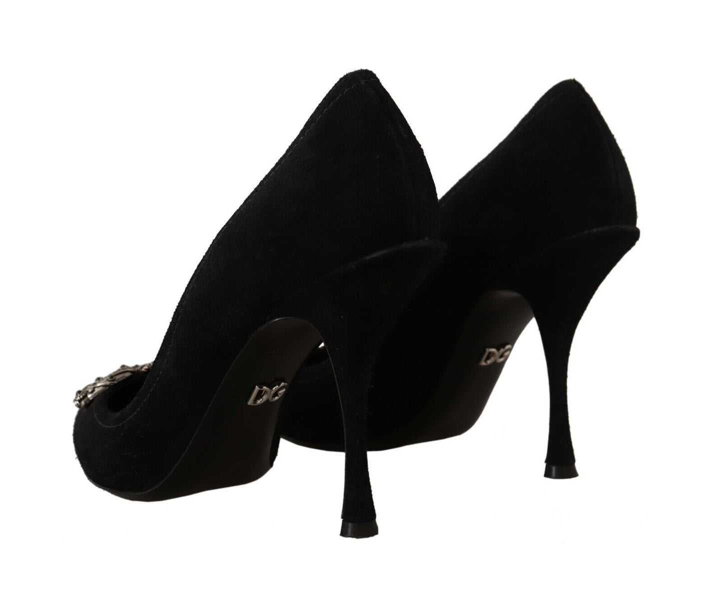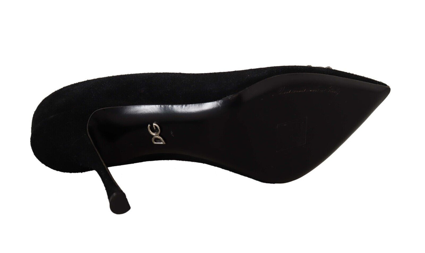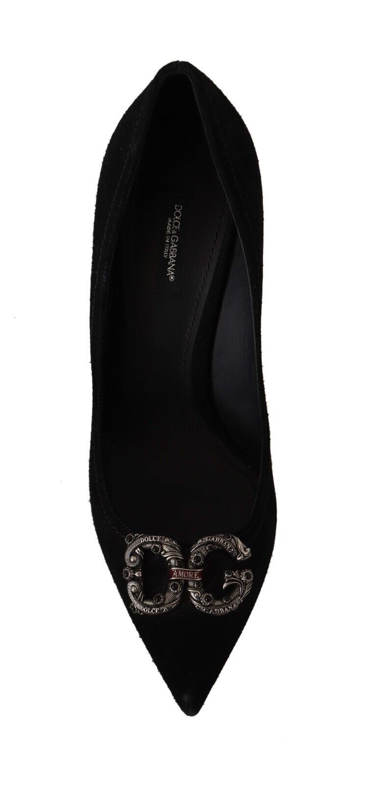 Step into luxury with these gorgeous, brand new pumps by Dolce & Gabbana. These sophisticated suede heels are designed to turn heads with their sleek black color and exquisitely crafted leather soles. Finished with the iconic logo details, they embody high quality and comfort, ensuring you’ll walk with style and confidence. Made with love in Italy, these pumps are a must-have for any fashion connoisseur.