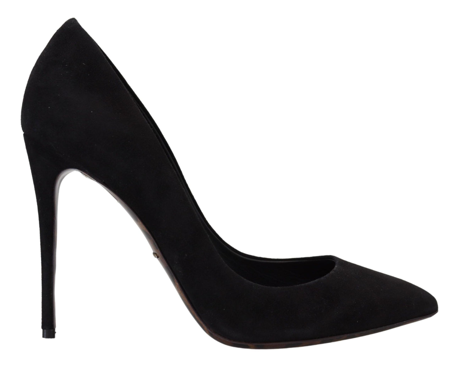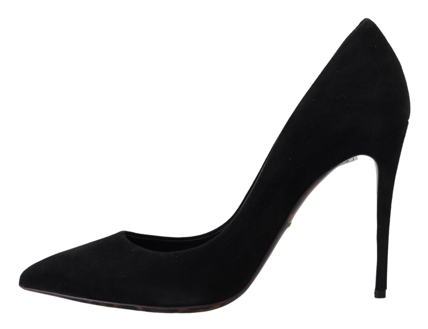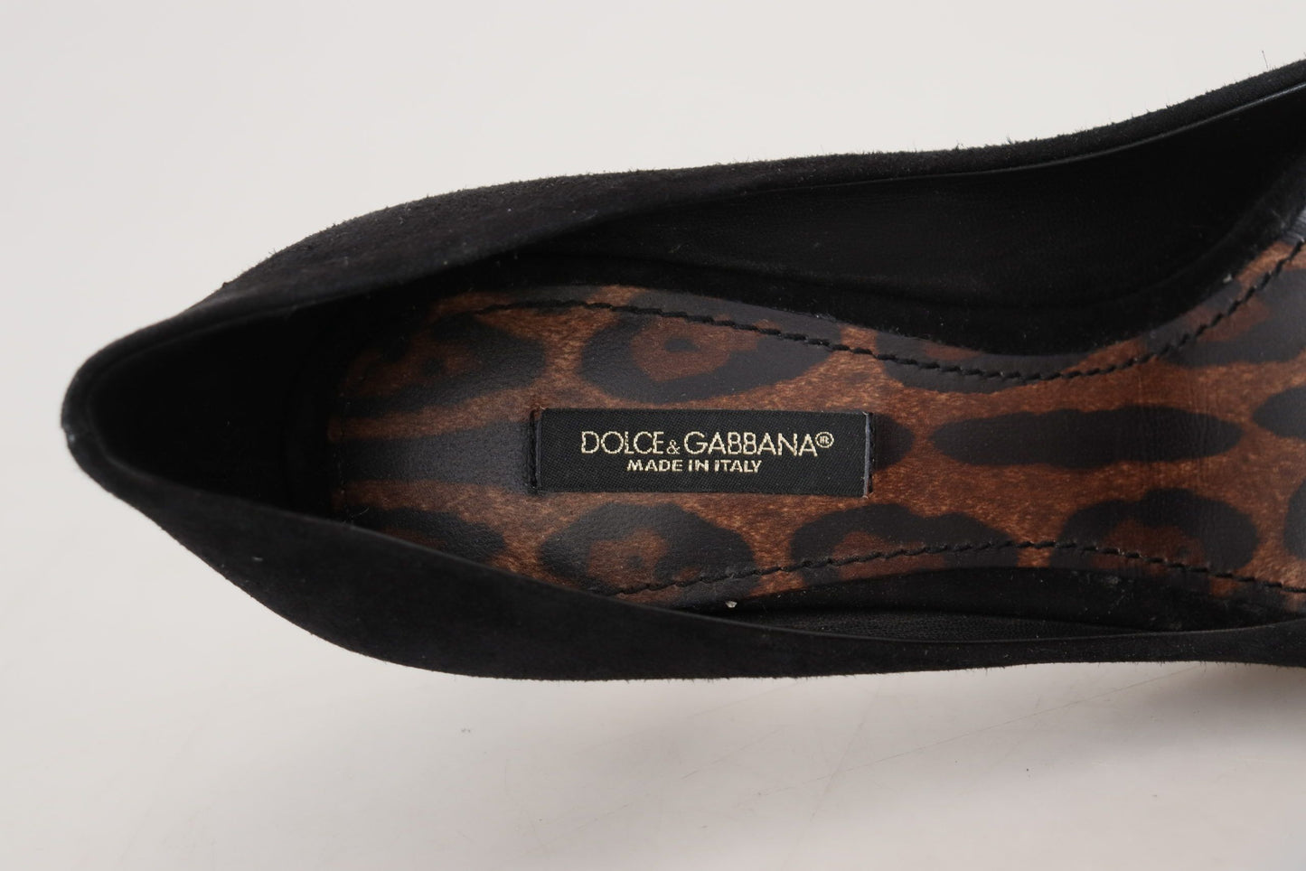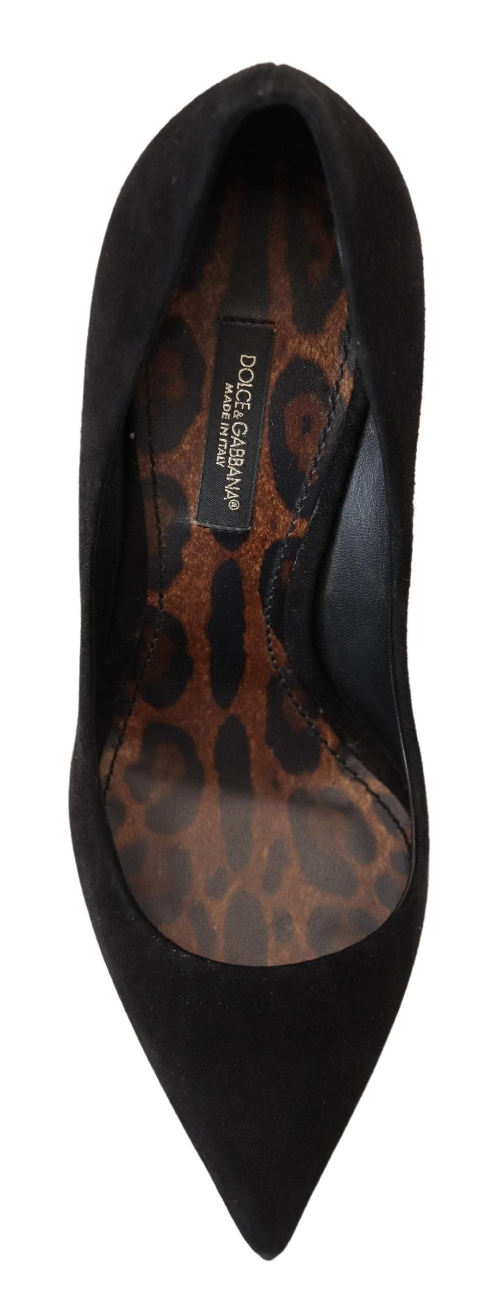 Indulge in the epitome of sophistication with these exquisite stiletto heels from Dolce & Gabbana. Gorgeous and brand new with tags, these pumps are fashioned from luxurious 100% suede leather, offering a chic addition to any ensemble. Designed to elevate your style, the shoes feature a classic black hue complemented by a striking brown leopard print on both the inner and outer sole for an unexpected twist. A leather bottom sole and subtle logo details carve out an exclusive look. Expert craftsmanship from Italy ensures each step you take is in pure elegance.