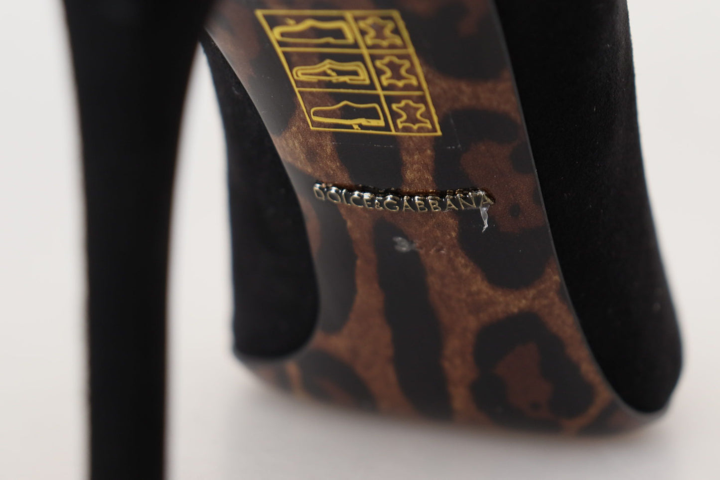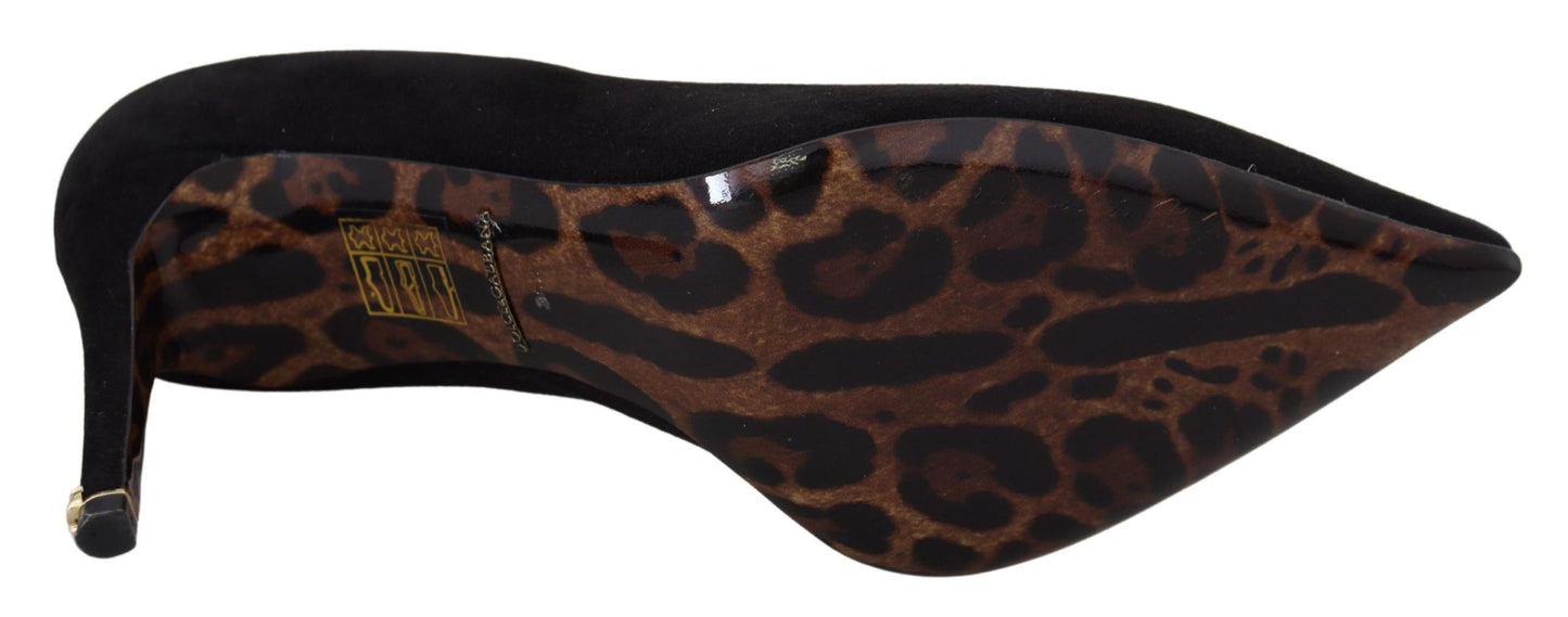 Gorgeous and elegant, these brand new stiletto heels pumps by Dolce & Gabbana radiate sophistication with their sleek black suede leather construction. Made in Italy, these shoes feature a luxurious leather bottom sole and are adorned with the iconic logo details, perfect for adding a touch of designer class to any outfit. Step out in style and comfort.