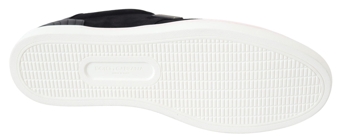 Step in style with these exquisite Dolce & Gabbana casual sneakers, perfect for any modern man seeking a blend of comfort and elegance. These brand new, tag-attached luxurious sneakers boast a sophisticated black color, crafted from premium leather and suede, finished with a durable rubber sole. With intricate logo details and Italian craftsmanship, these shoes are a testament to exclusivity and high-quality fashion.