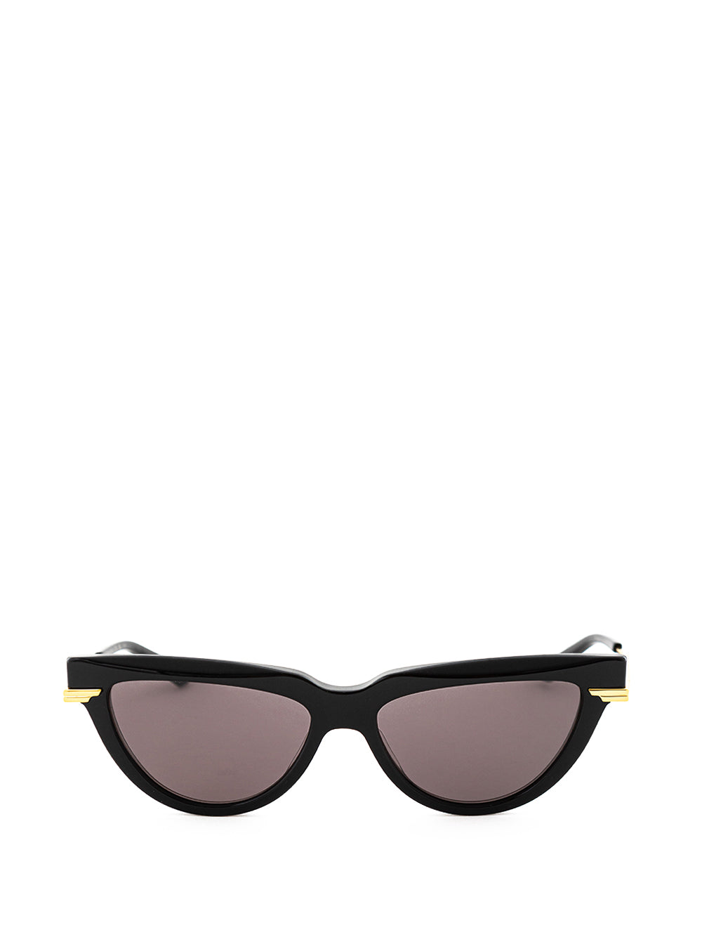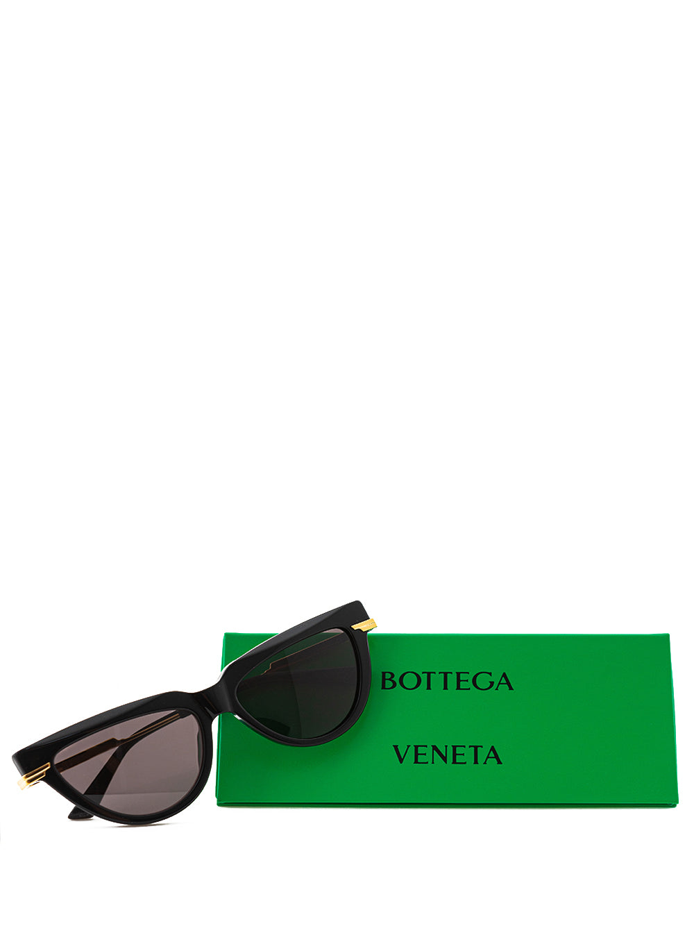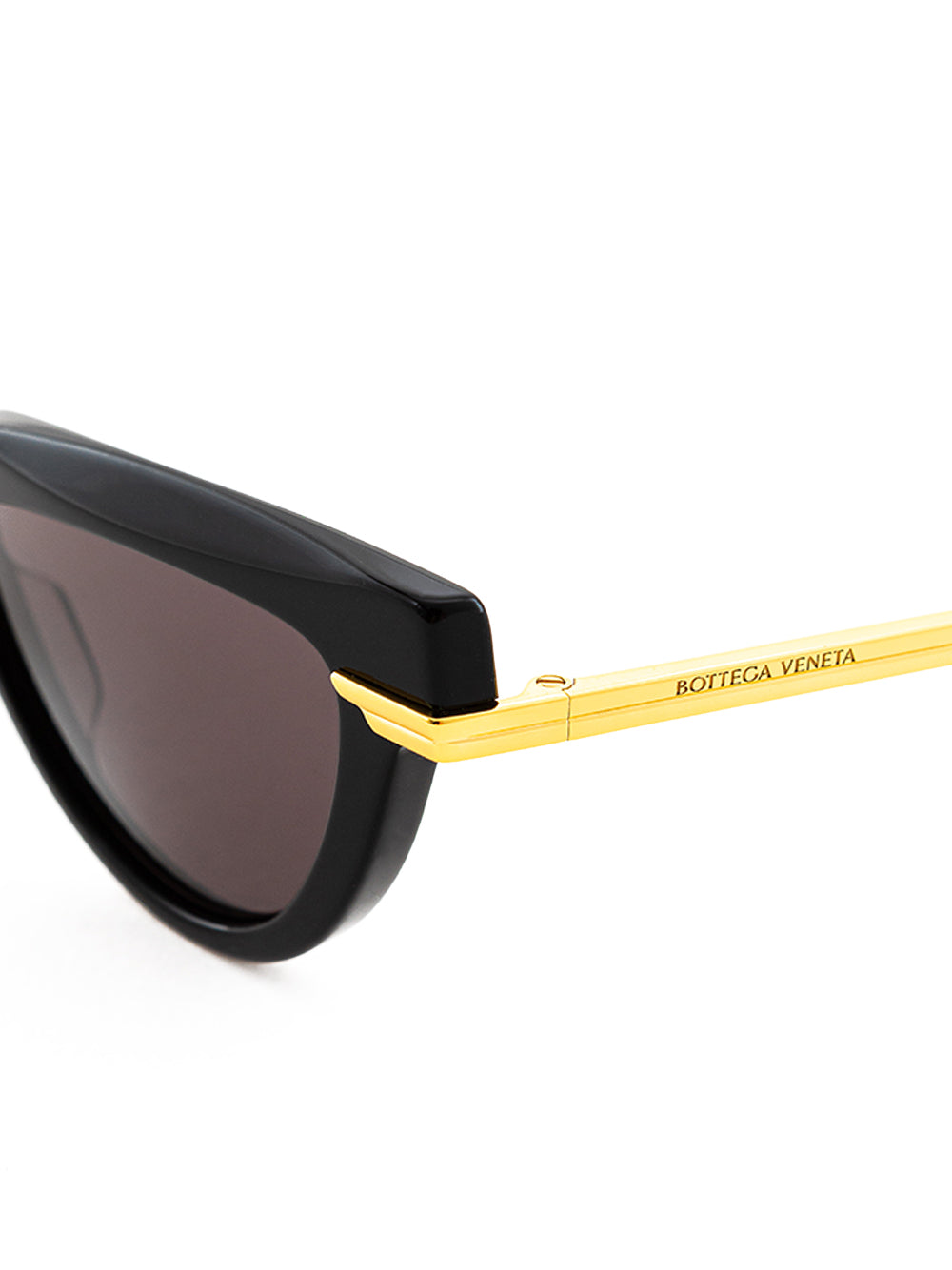 Exude sophistication with these stunning Bottega Veneta black sunglasses, featuring elegant golden details. These shades are a perfect blend of classic style and modern luxury, ideal for fashion-forward individuals. The dark grey lenses offer not just style but also protection, making them a practical addition to your ensemble.
