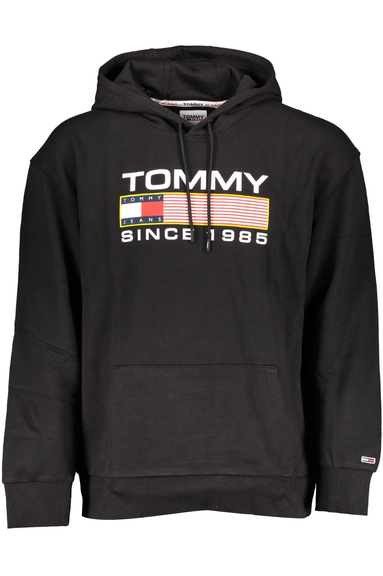 Step out in style with this sleek black hooded sweatshirt from Tommy Hilfiger, a must-have for any fashion-forward wardrobe. Designed to keep you warm and comfortable, this sweatshirt features a cozy hood, a convenient large central pocket, and a blend of vivid embroidery and print that showcases the iconic Tommy Hilfiger logo. Crafted from 95% premium transitional cotton, it promises durability and an eco-friendly choice.