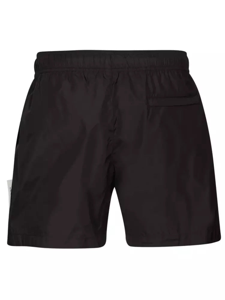 Elevate your poolside style with these sleek black swim shorts featuring convenient pockets and subtle logo accents. An elastic band ensures a comfortable fit while the signature tab adds a dash of designer flair. Crafted with precision in Portugal, these shorts promise both style and durability with their high-quality polyester fabrication.