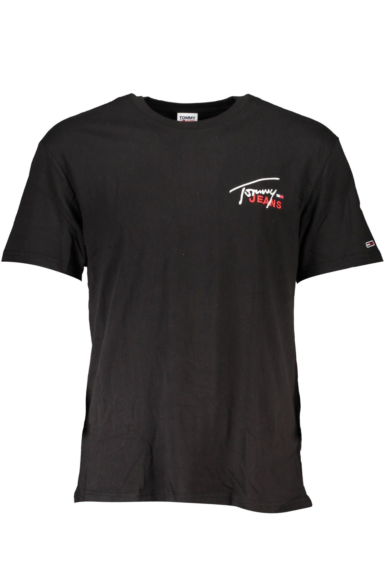 Experience the epitome of comfort coupled with classic style in this black t-shirt from Tommy Hilfiger. Designed for the modern man, it features short sleeves and a crisp round neck, accentuated by the iconic embroidery logo. Crafted from 95% transitional, high-quality cotton, this tee promises breathability and durability for your everyday wardrobe.