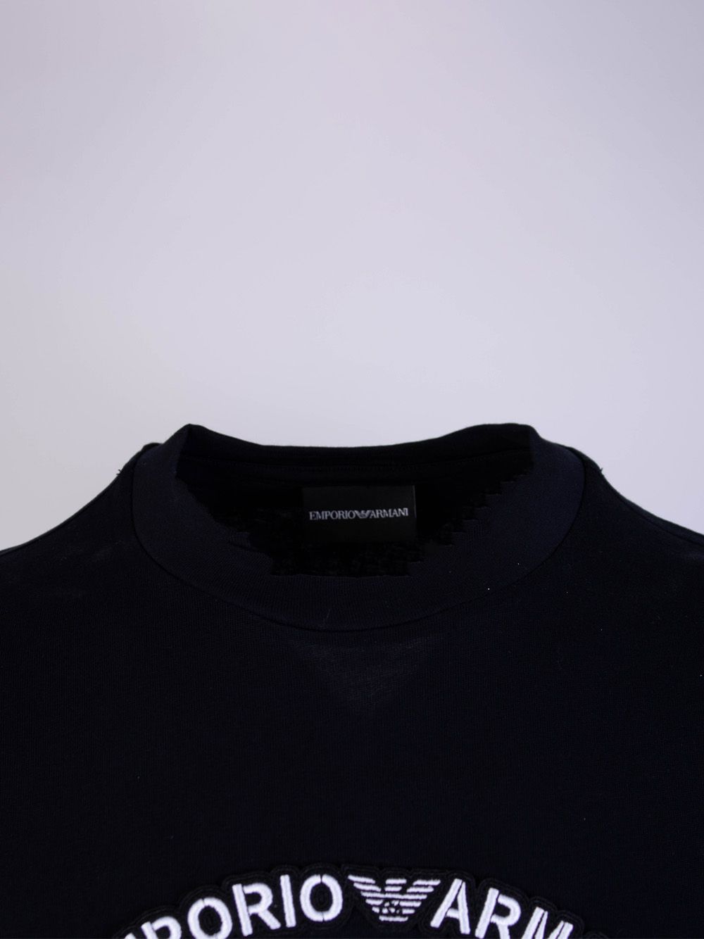 Enrich your wardrobe with this stunning new addition, a 100% Authentic Emporio Armani T-Shirt. Perfect for those who appreciate a blend of casual luxury and comfort. Crafted for a regular fit with short sleeves and a classic round neck, this tee features the iconic Emporio Armani logo front and center. Its rich navy blue hue is versatile, ensuring you can pair it effortlessly with a wide range of bottoms and layers.